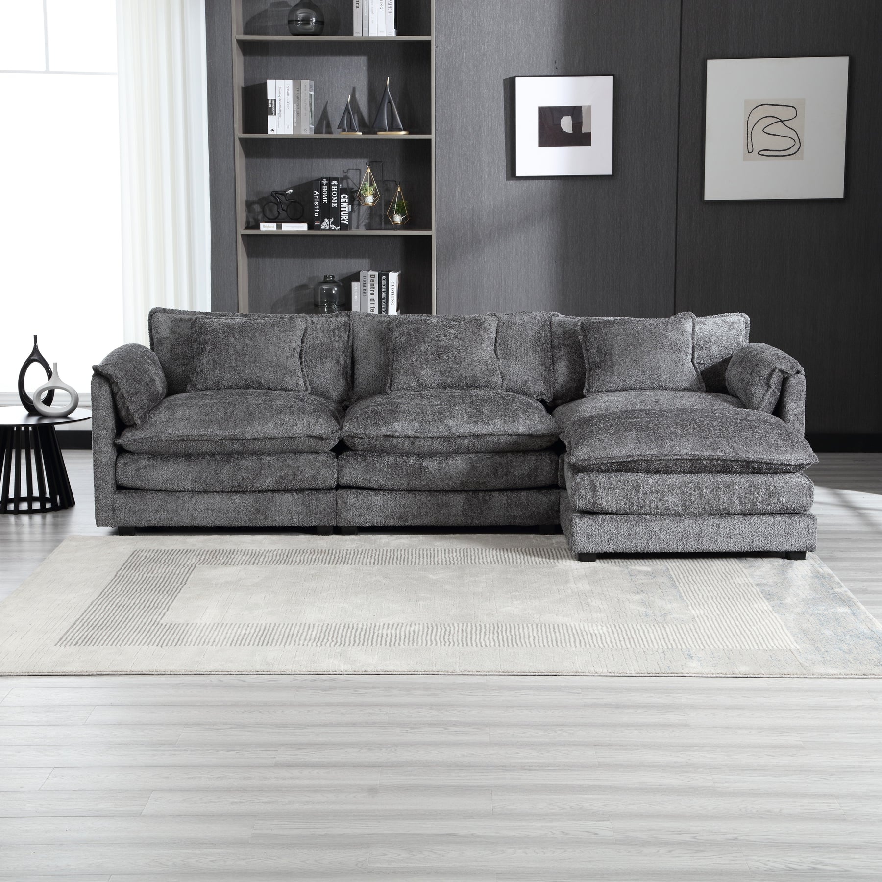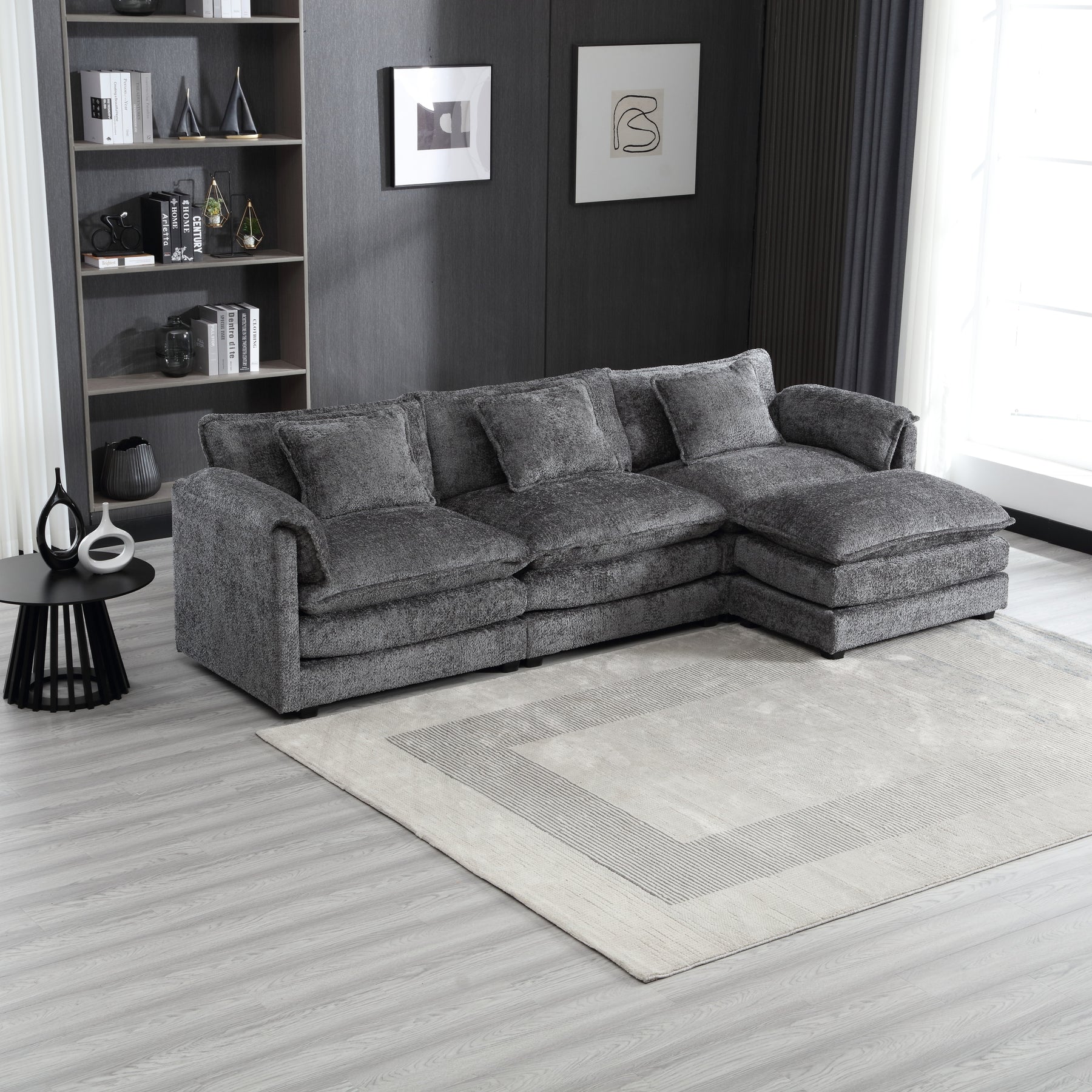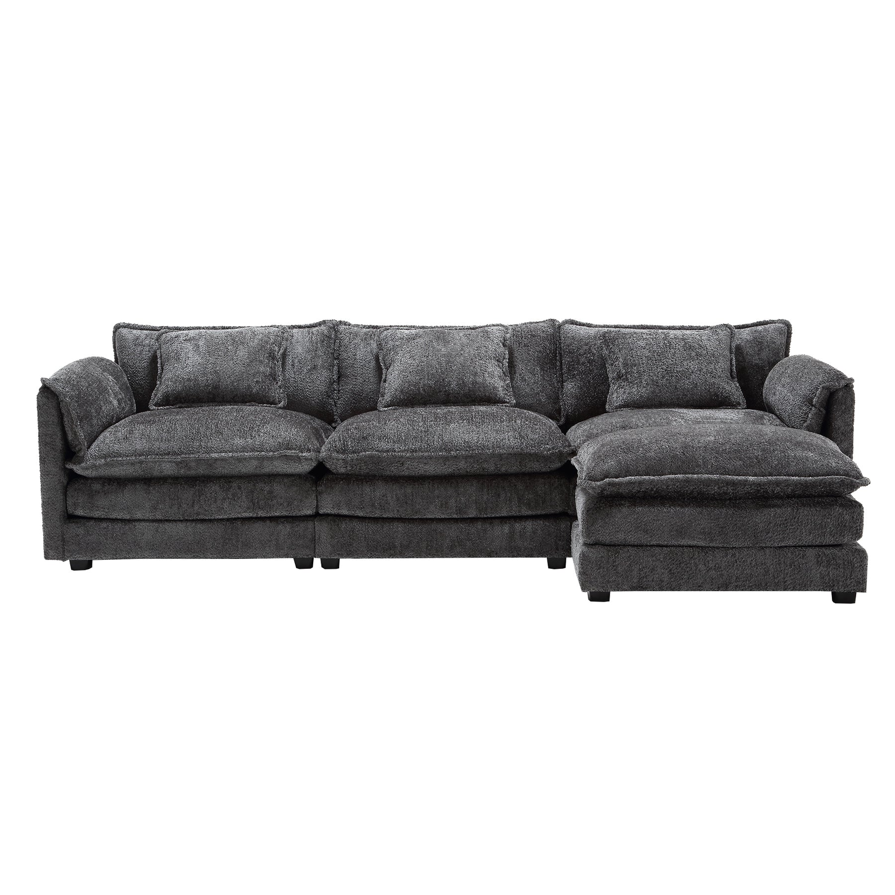 • Solid Construction: Our fluffy sectional couches for living room is built on a sturdy hardwoo d frame, durable memory foam cushions are built into the fabric and the black solid wood legs perfectly support the entire sofa for long term use.