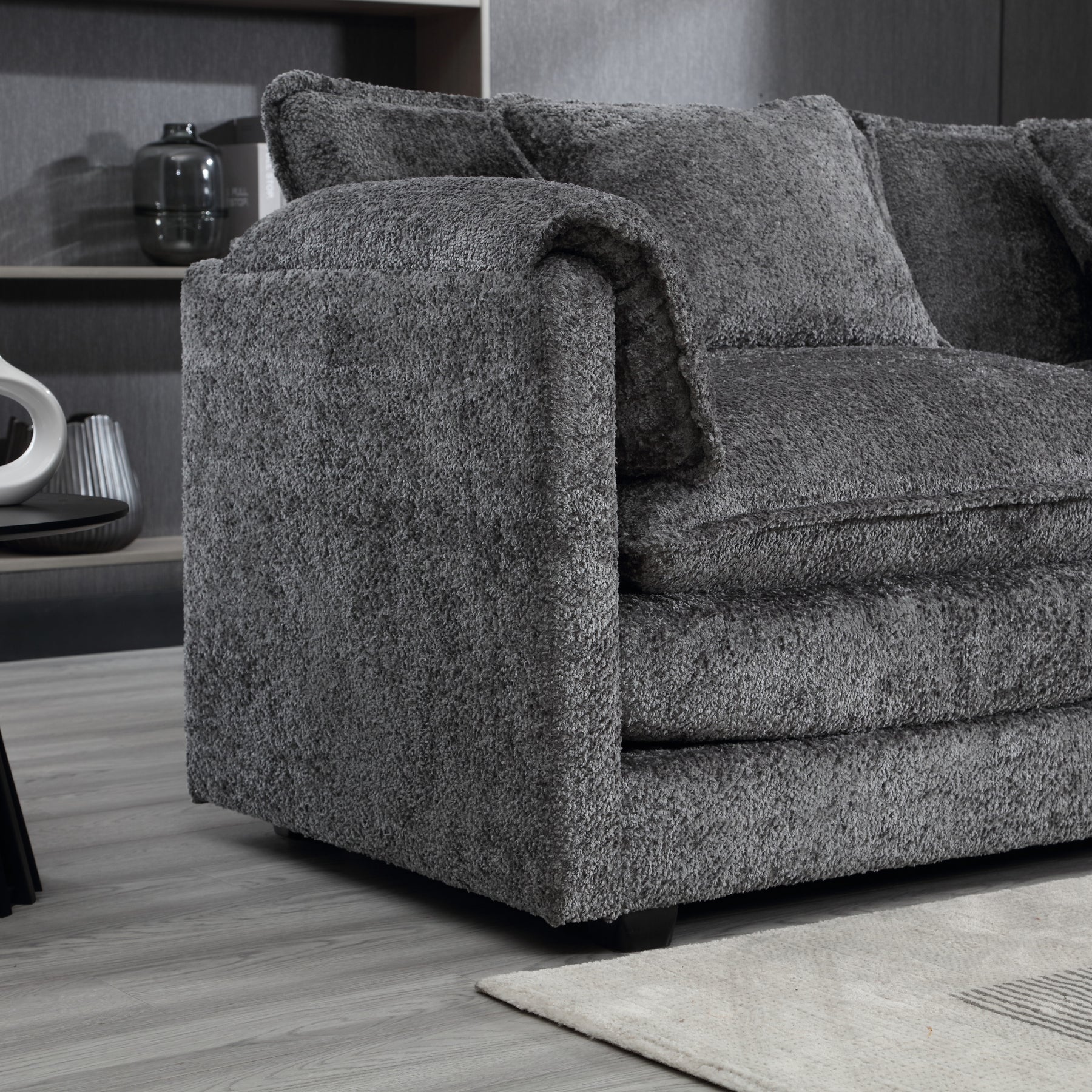 • Comfy Chenille Fabric: The chenille fabric is soft and skin-friendly, providing a soft and comfortable touch and adding a sophisticated and luxurious look to the boucle couch.
