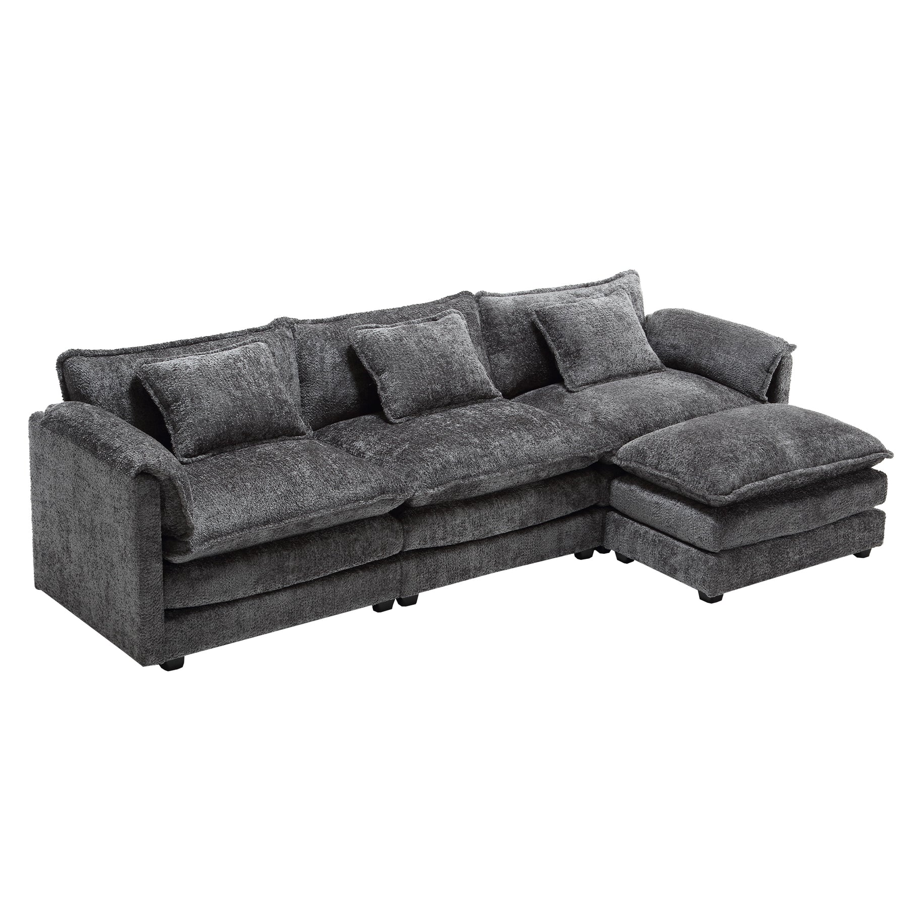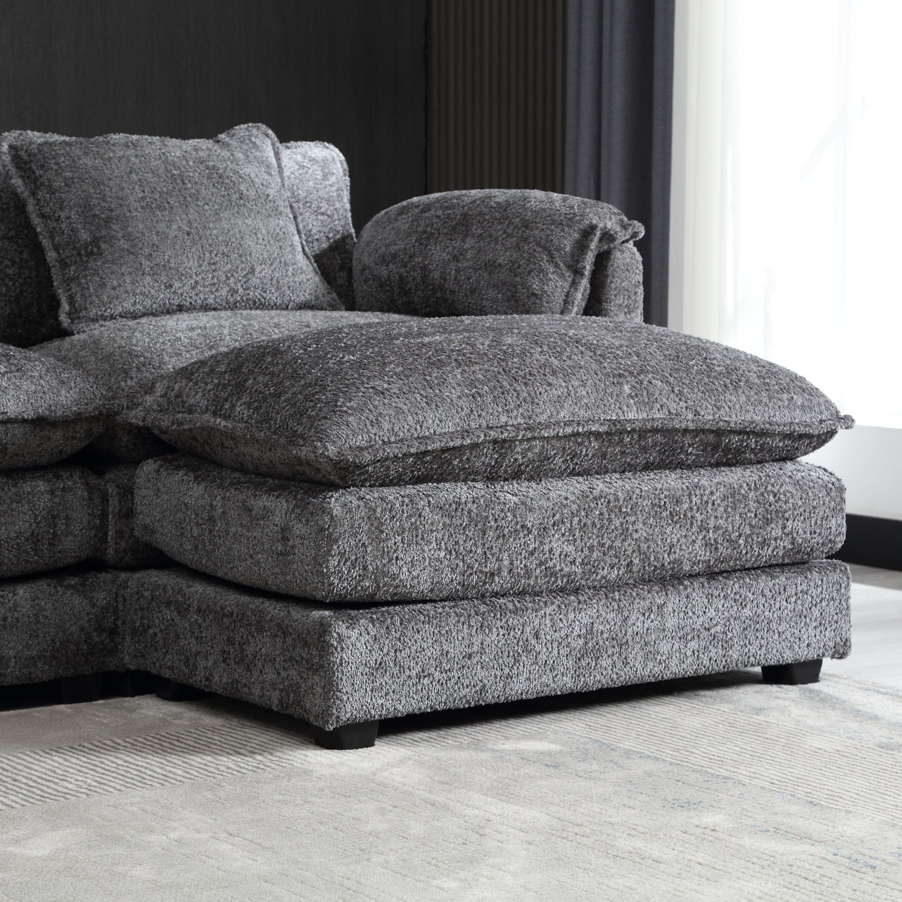 • Comfortable Sectional Couch: The Cloud sectional Sofa features upholstered 2-layer seat cushions with high-resiliency foam to provide a soft and cozy feel, The sectioal couch comes with a convenient and versatile removable ottoman, Use it as a footrest, extra seating, or as a chaise lounge extension, so whether you're sitting down and relaxing or lying down and taking a nap, this modular sectional sofa will provide you with an unbelievably comfortable experience.