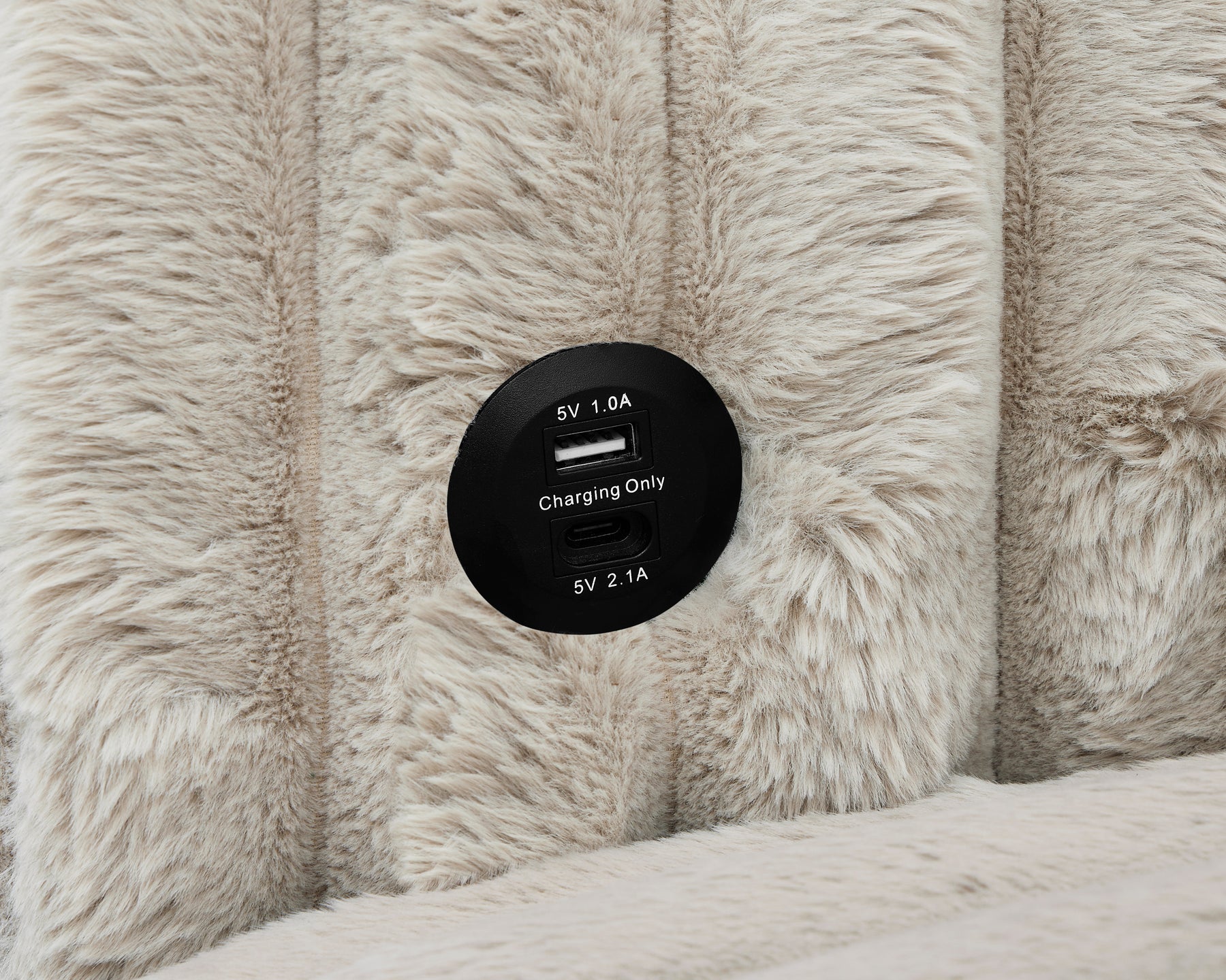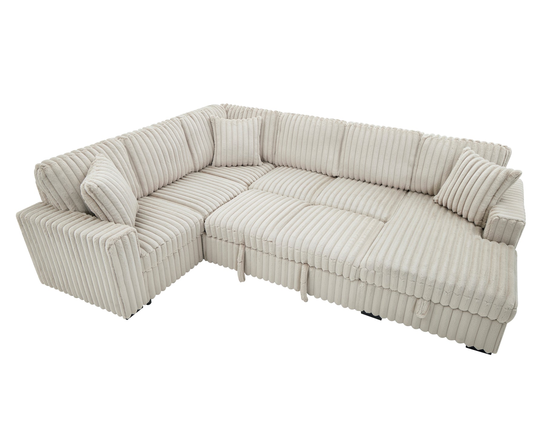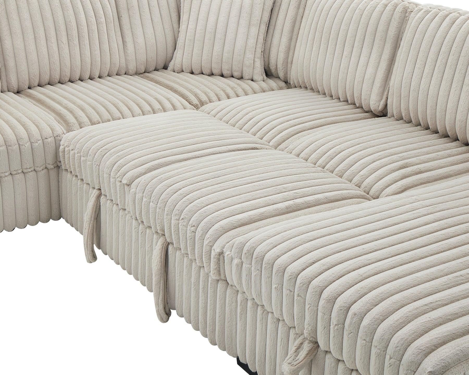 122 Inch Pull Out Couch, Rabbit plush Fabric Sofa Bed with USB Ports & Comfy Upholstered, Oversized U Shape Sectional Sleeper Sofa Bed with Storage Chaise, Khaki