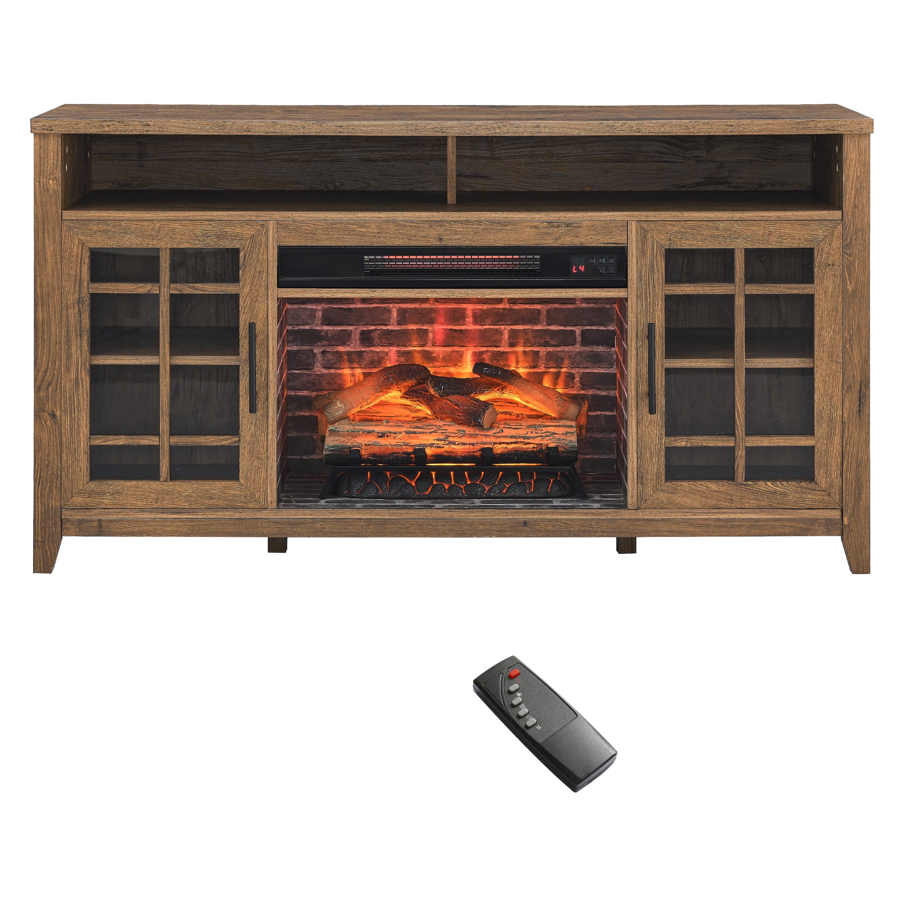 55 inch TV Media Stand with Electric Fireplace KD Inserts Heater,Reclaimed Barnwood Color