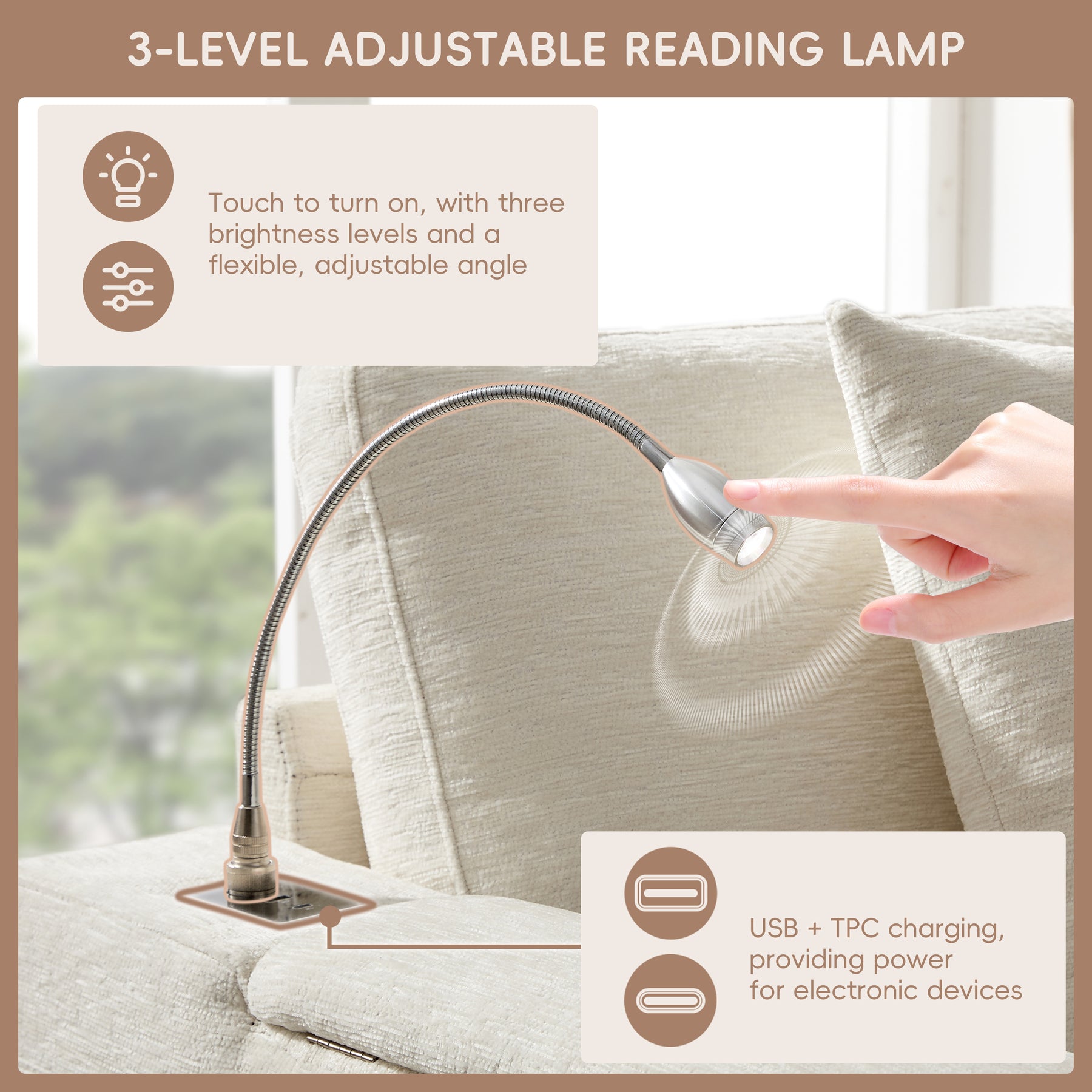 • Adjustable Reading Lamp: Tailor your ambiance instantly. The integrated side lamp features a swiveling head for directional control, touch-sensitive dimming for brightness, and simple on/off touch activation.