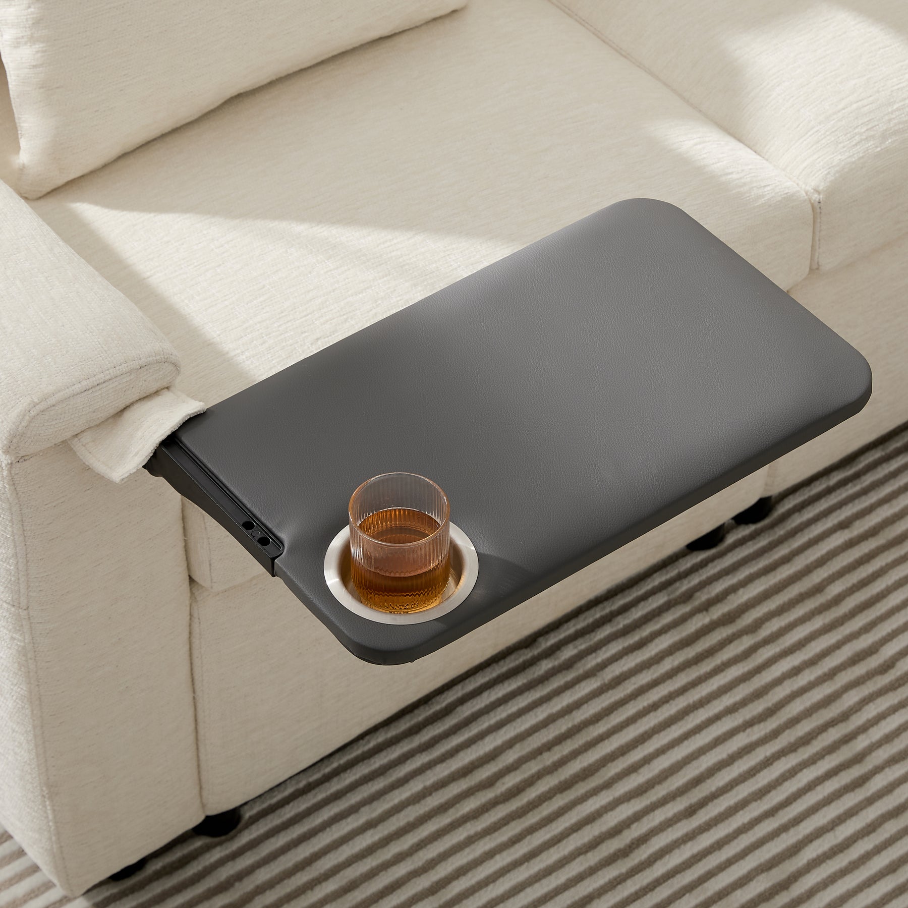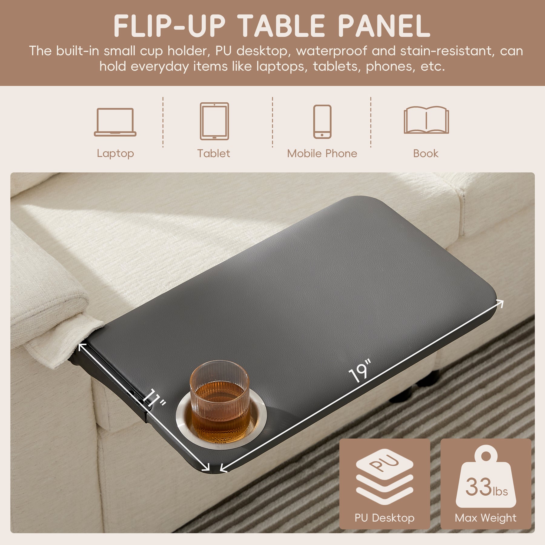 • Flip-up Table Panel: Need a quick surface? Flip out the handy side table featuring a dedicated cup holder slot – perfect for keeping your drink secure and your daily items while you work or relax.