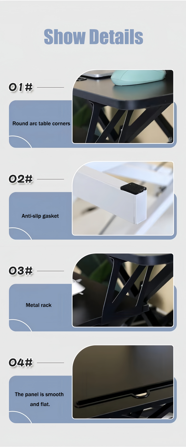 • 【STURDY STRUCTURE】Ergonomic design standing desk. The solid structure keeps your desk riser steady and the maximum weight hold up to 30 lbs.