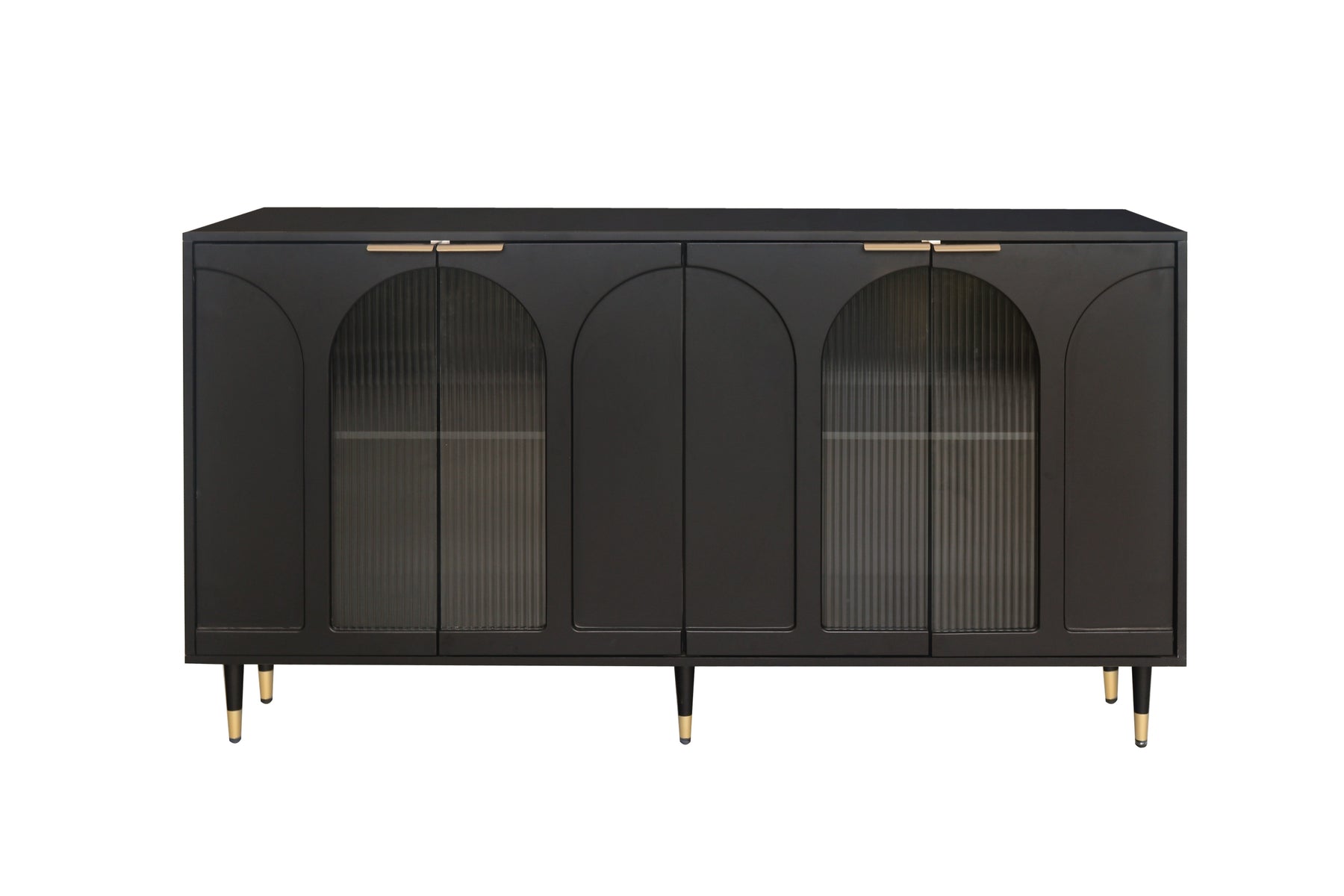 Accent Black Wooden Cabinet with 4 Glass Doors Sideboard Buffet Server Cabinet Storage Cabinet