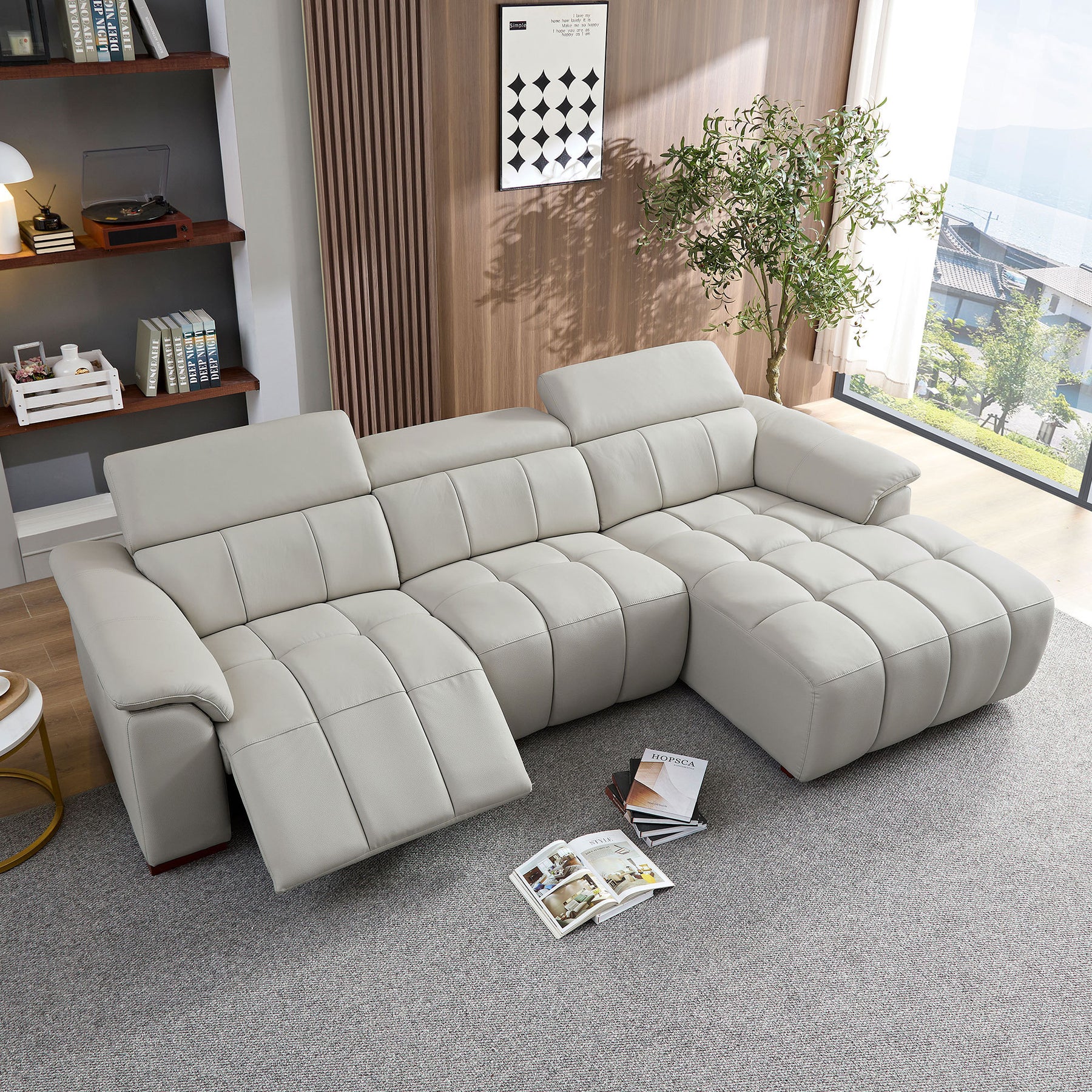 Wall-Hugger Reclining Sofa Modern Electric Control Genuine Leather L Shaped Couch,Lounge Seat Theater Seating Furniture with USB Port, Sofa with Headrest & Footrest for Living Room,Apartment,Office