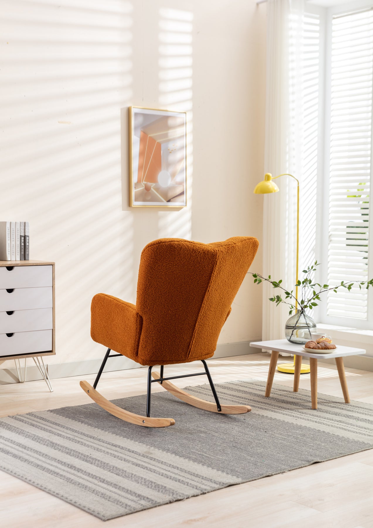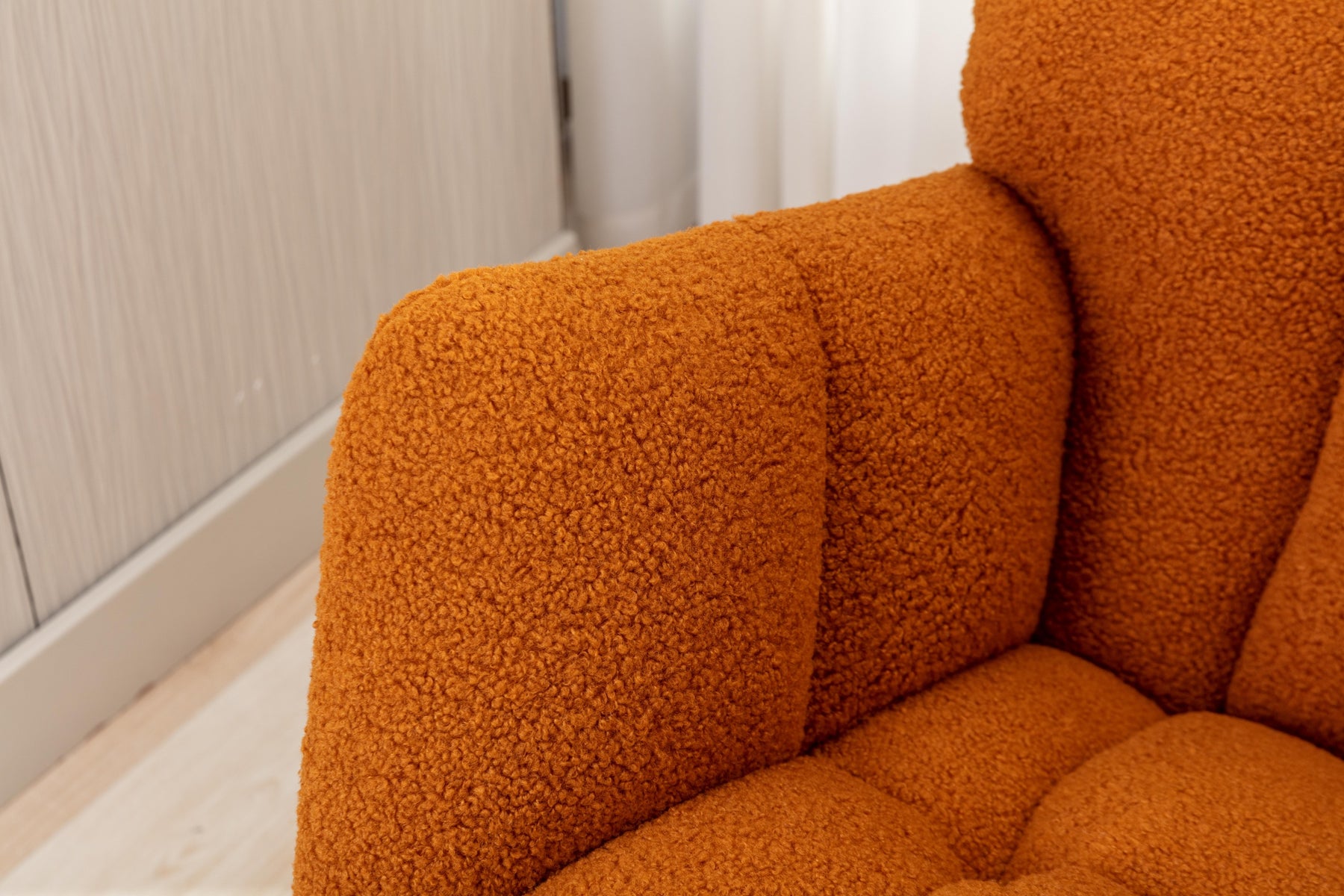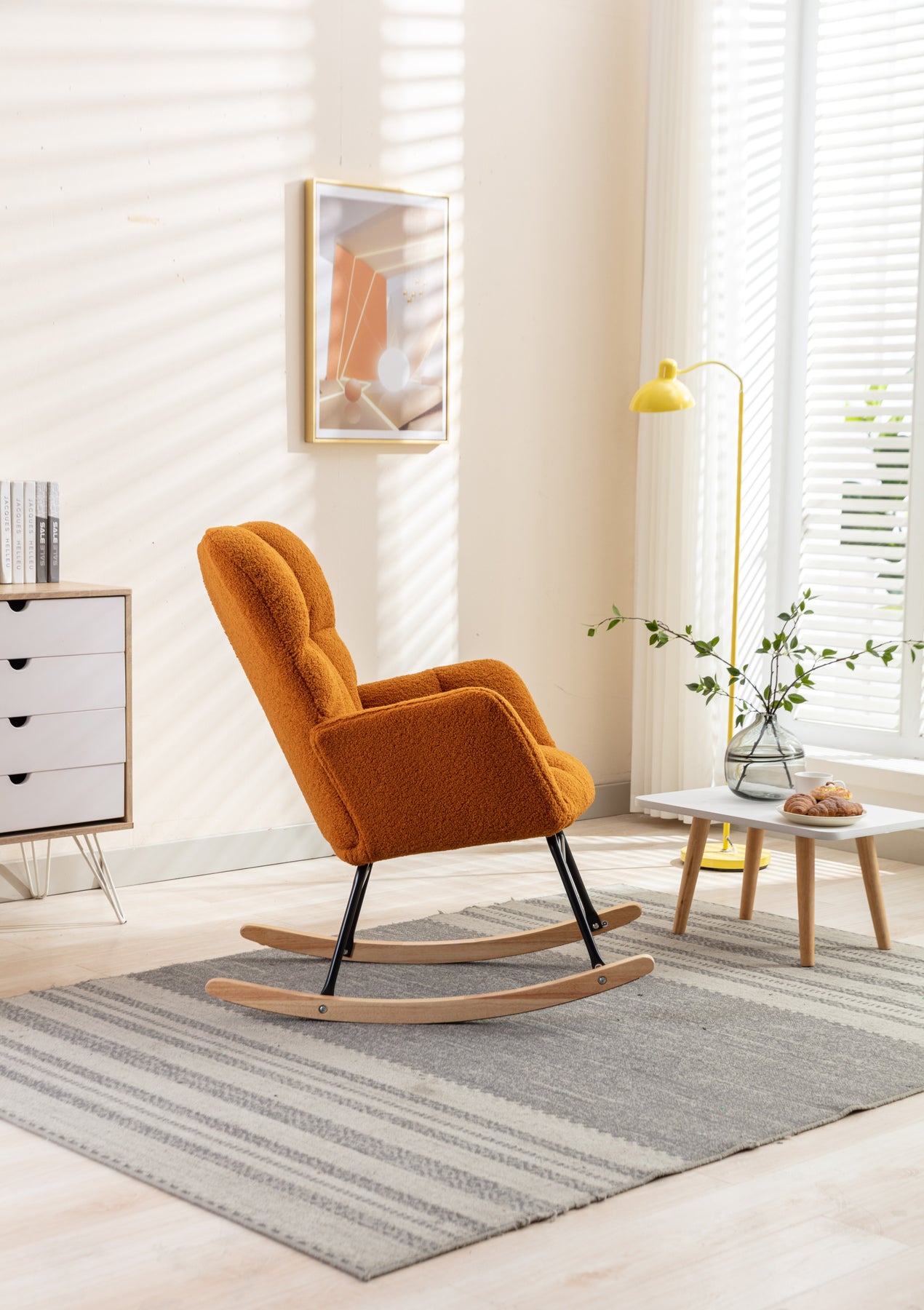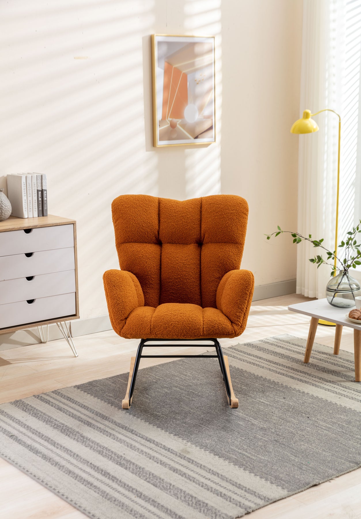 • Product BOM:Soft Teddy Material+Foam Filling+Wooden Frame+Black Paint Metal Base+Wooden Rocking Legs+Upholstered+Floor Protection And Isolation Layer;