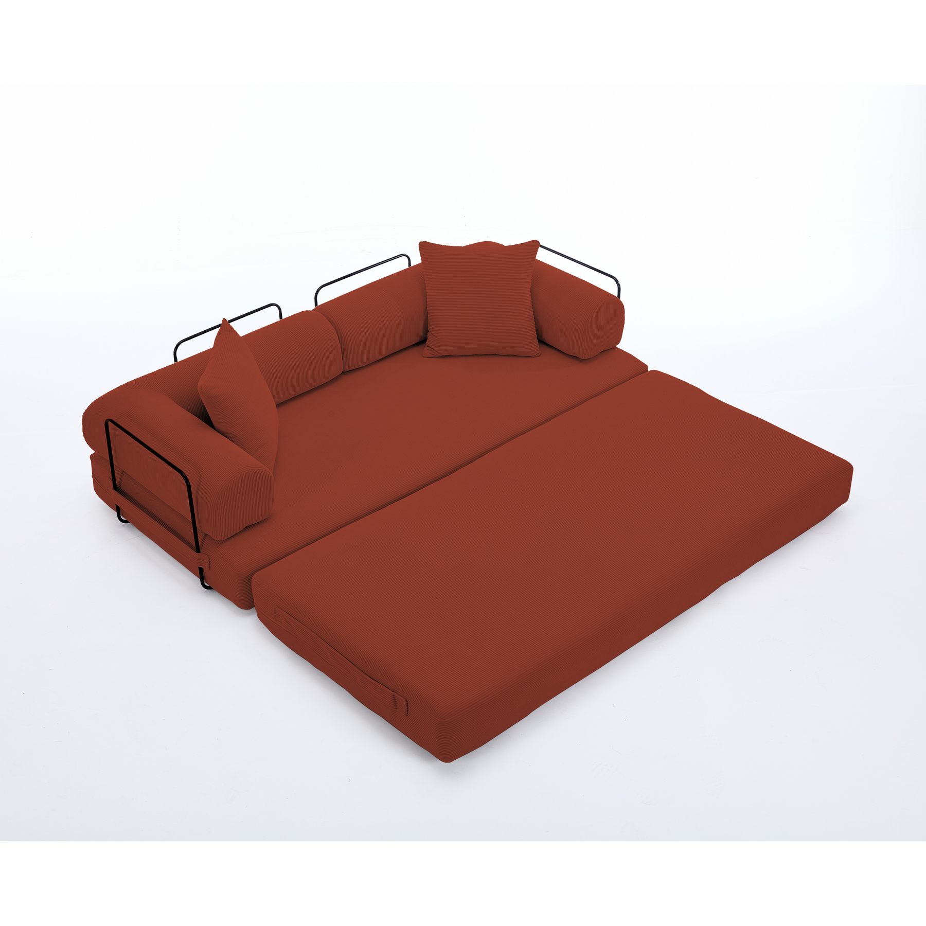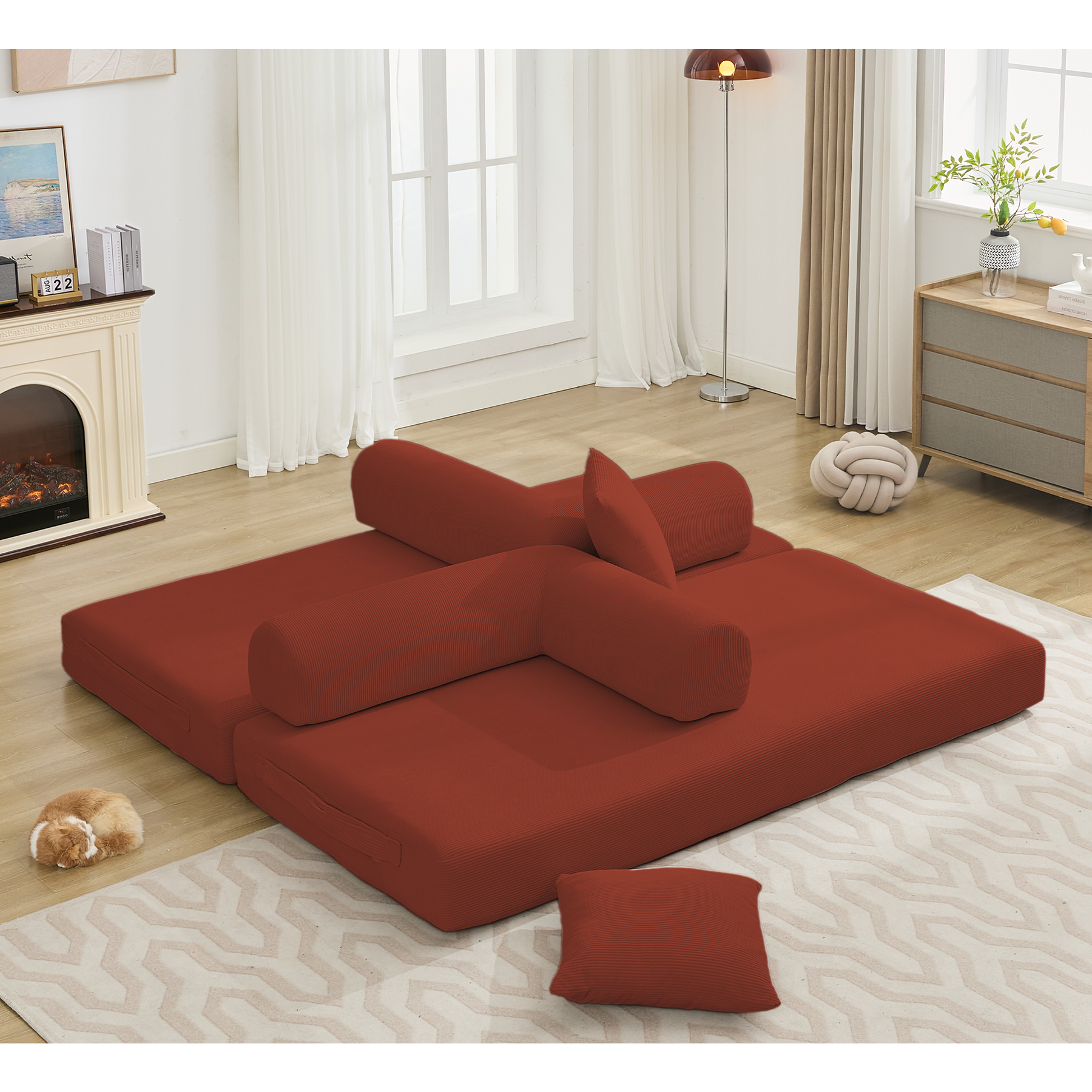 [NEW ARRIVED] [VIDEO PROVIDED] 78.5' Folding Convertible Out Sleeper Sofa Bed,5-in-1 DIY Combination Convertible Sofa, 3 seat, Folding Sleeper Sofa, King Size , Bedroom,Apartment,Corduroy,Ancora Red