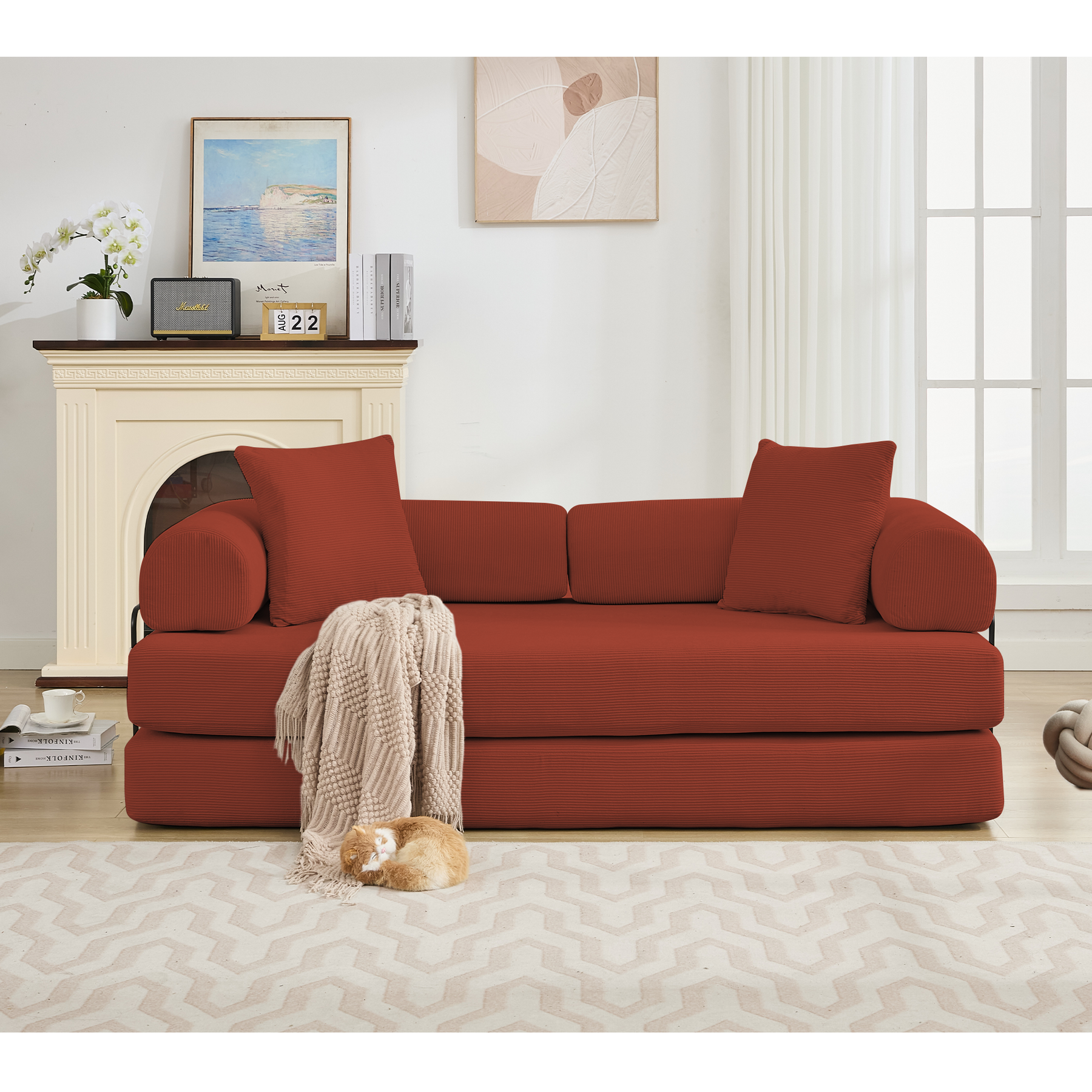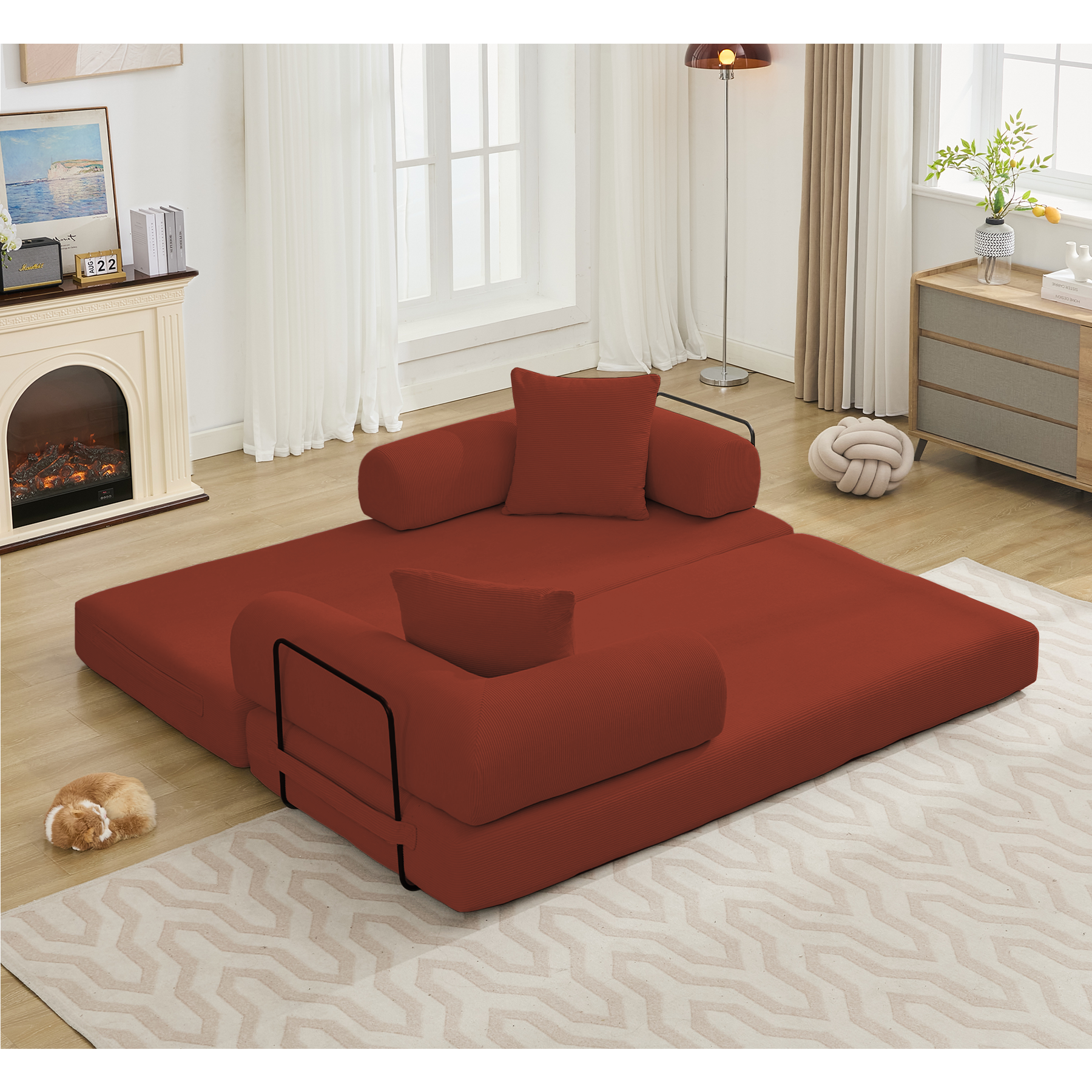 • 【Comfort Corduroy Fabric】Upholstered in Small Streak Corduroy fabric, oversized sleeper sofa offers a soft touch while providing a fuzzy and breathable texture. Corduroy fabric decorates your home with warmth and calmness, we also have two soft and cozy pillows for the ultimate in coziness, Warms you up every day!