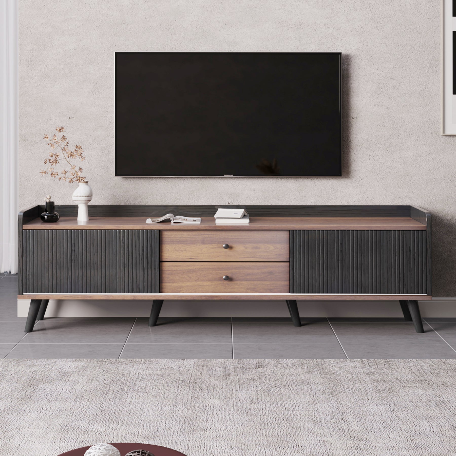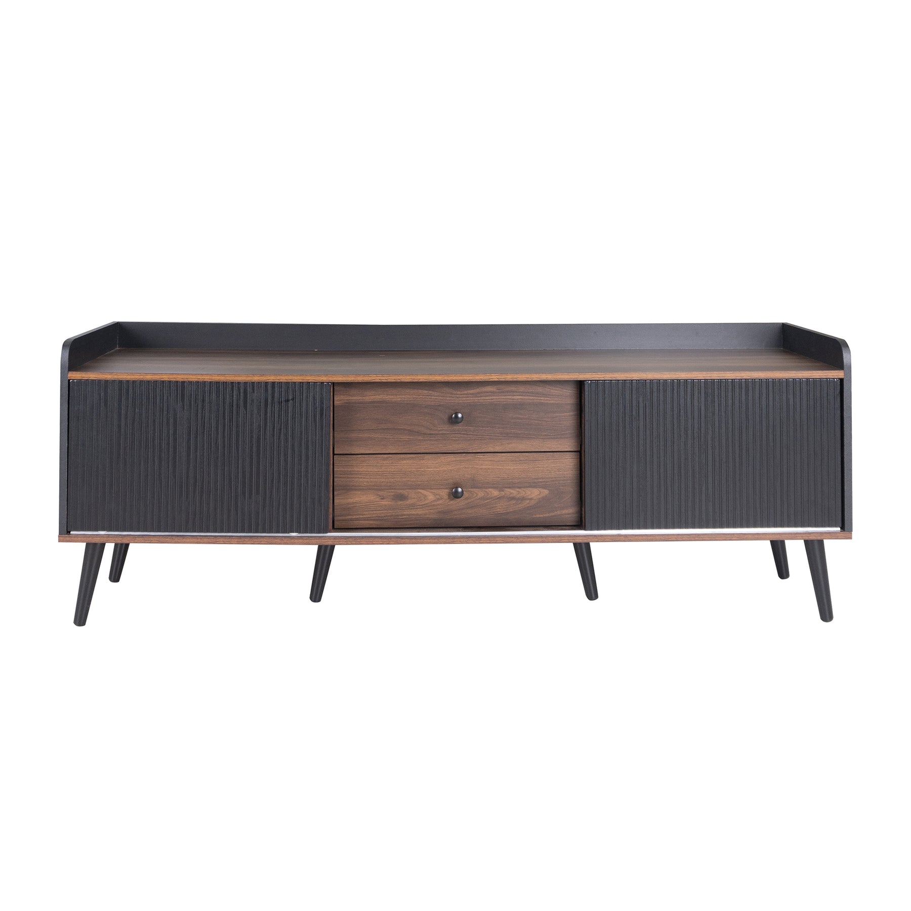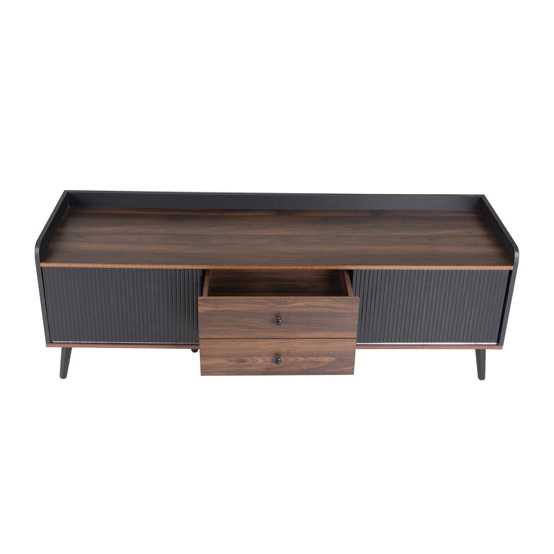 63'' Mid Century TV Stand with 2 Cabinets& Open Compartments