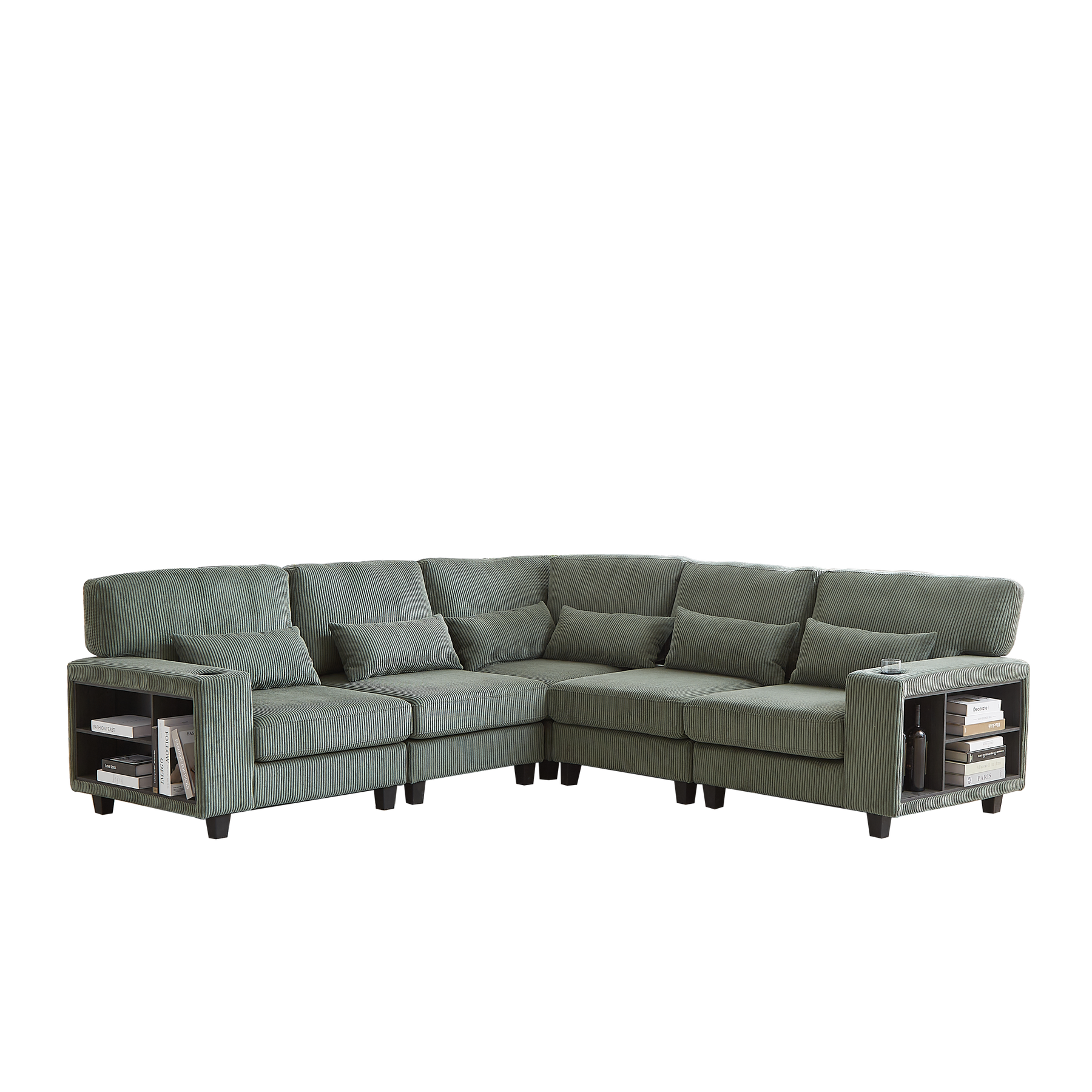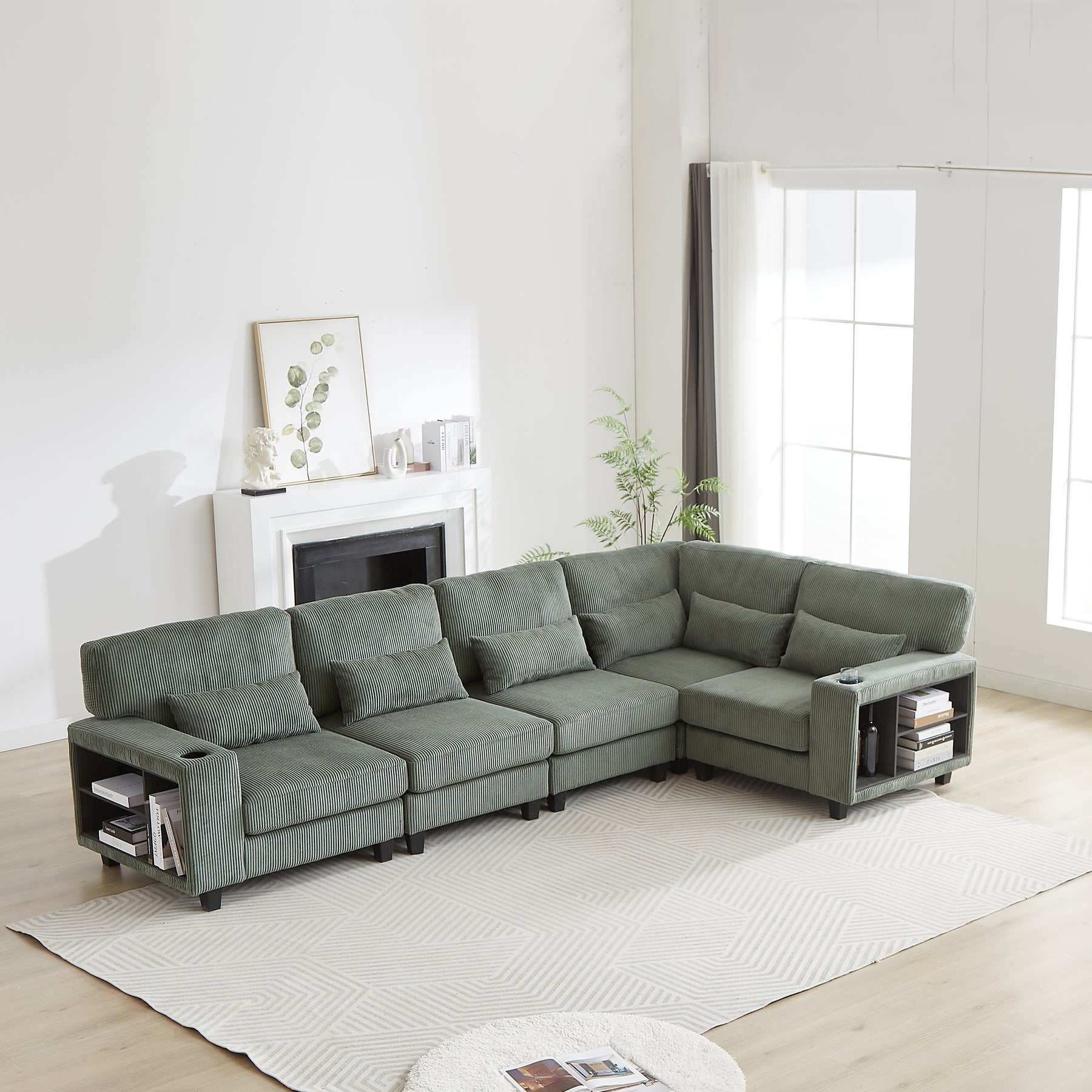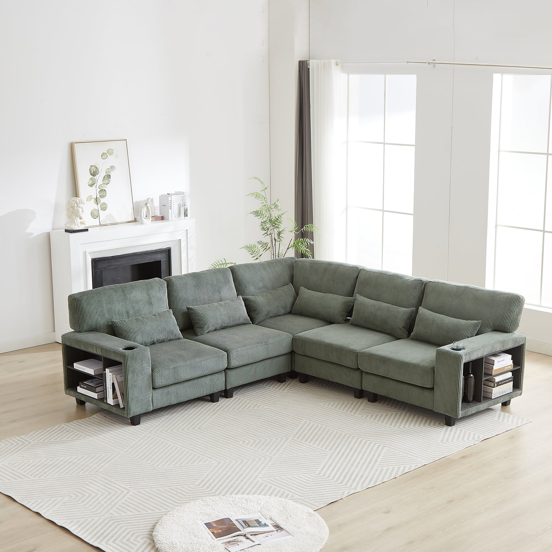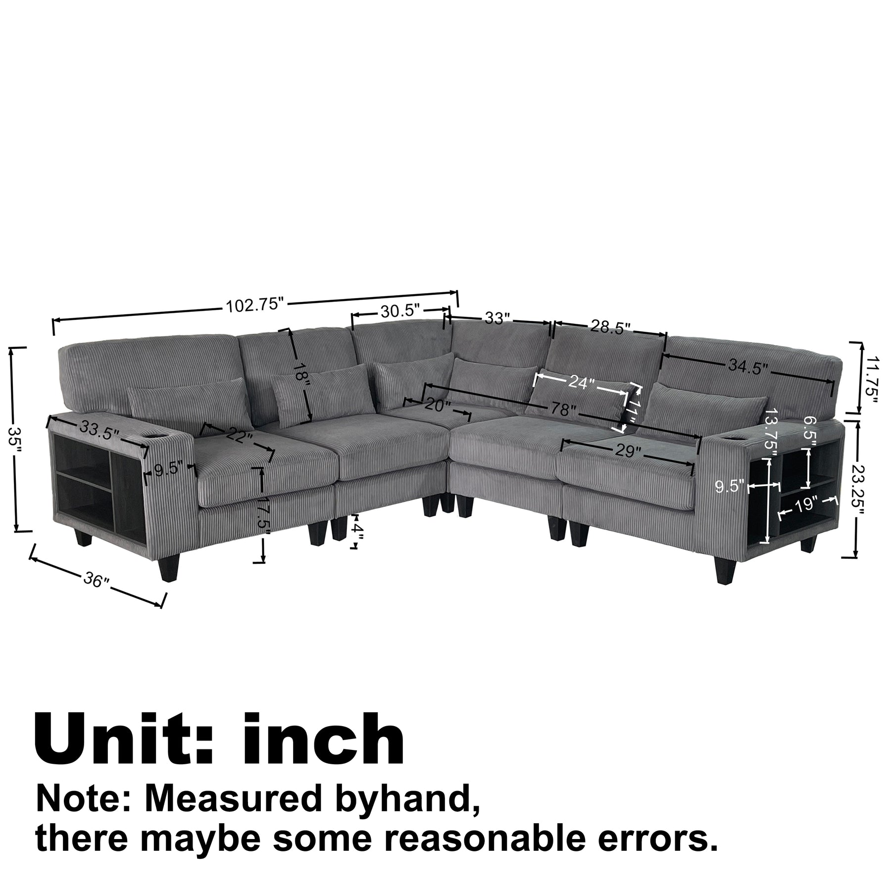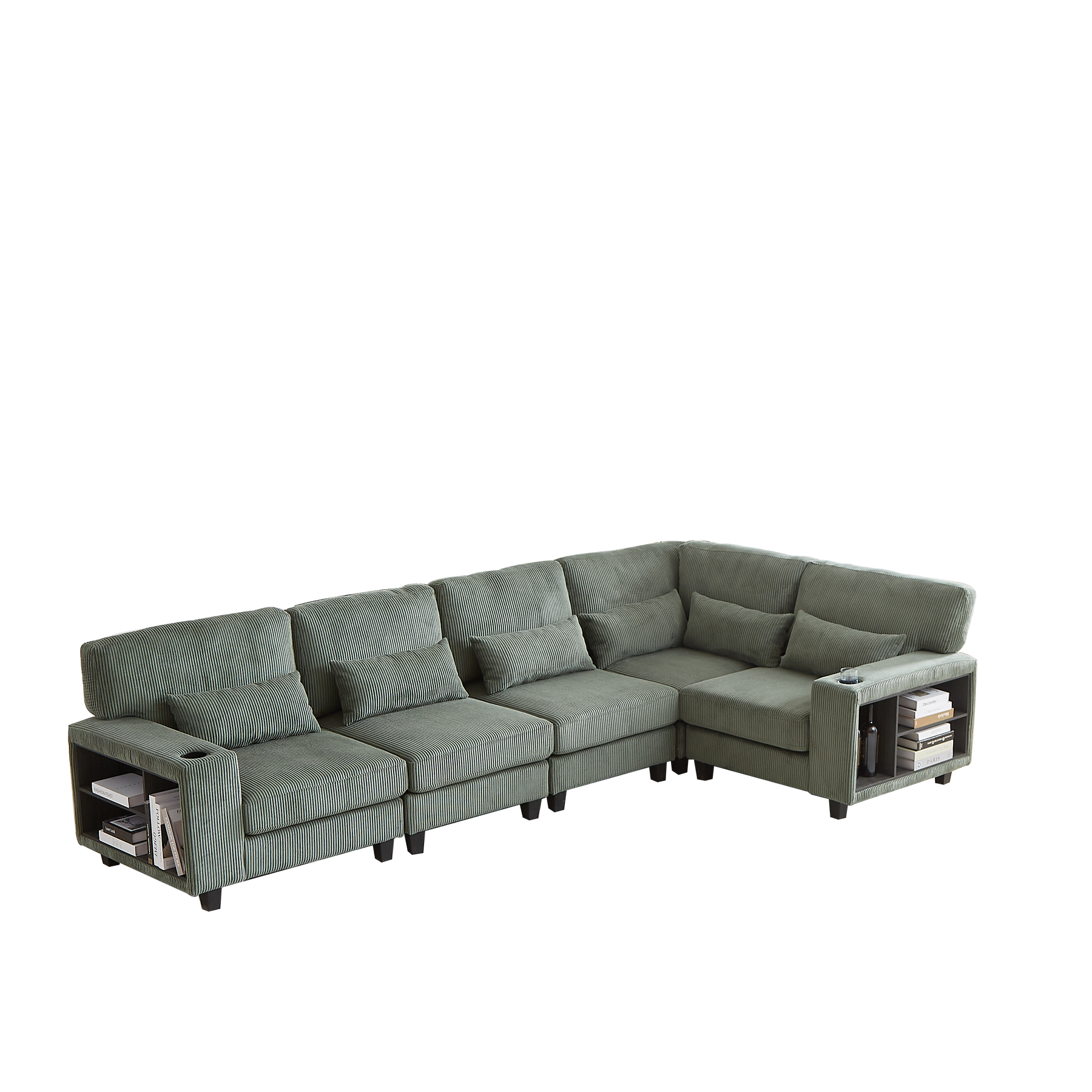 102.75*102.75' L-Shaped Modular Sectional Sofa, Modern Corduroy Sectional Sofa, Arm with Storage With Cup Holder 5-Seat Convertible Sectional Sofa for Living Room, Bedroom, Lounge and Projection Room