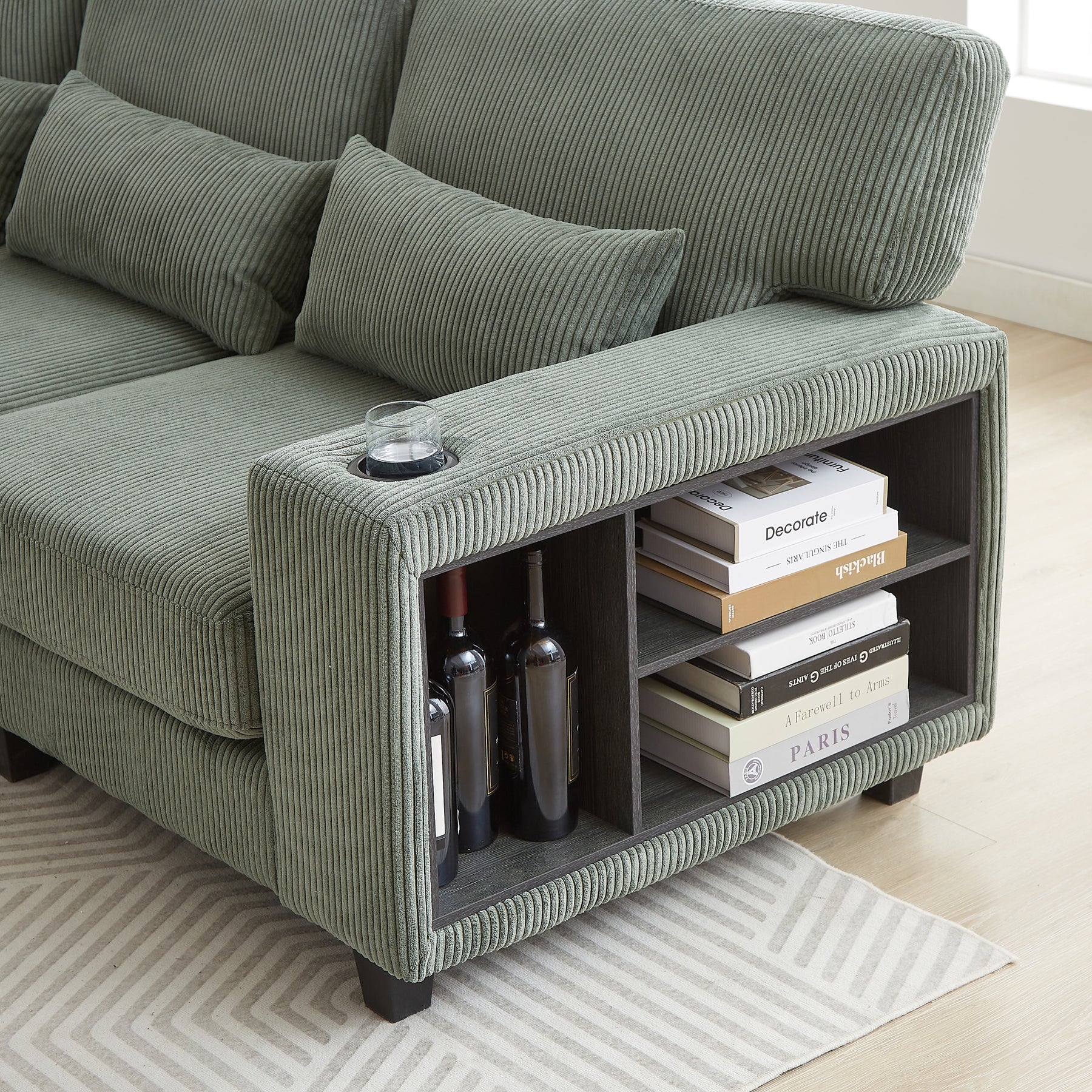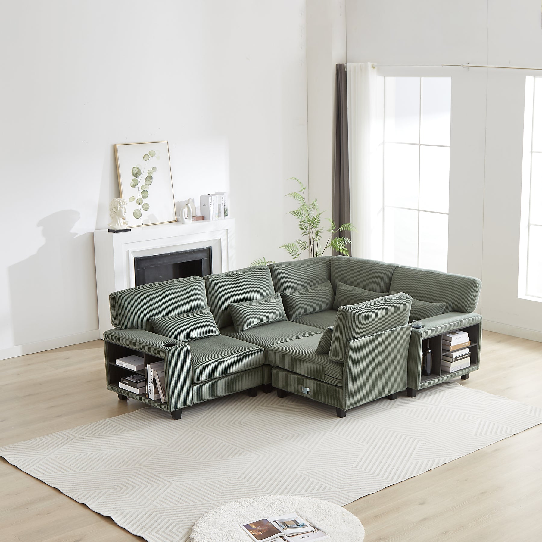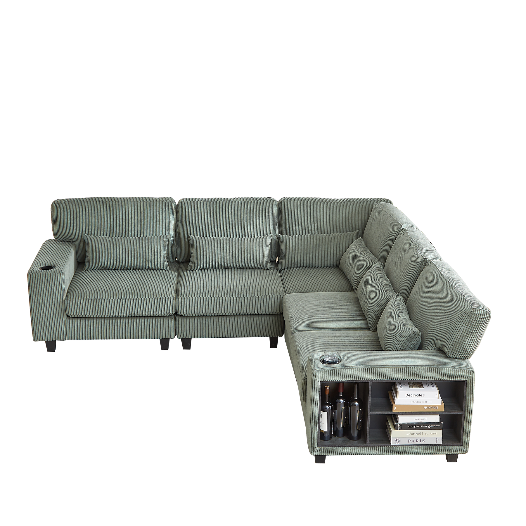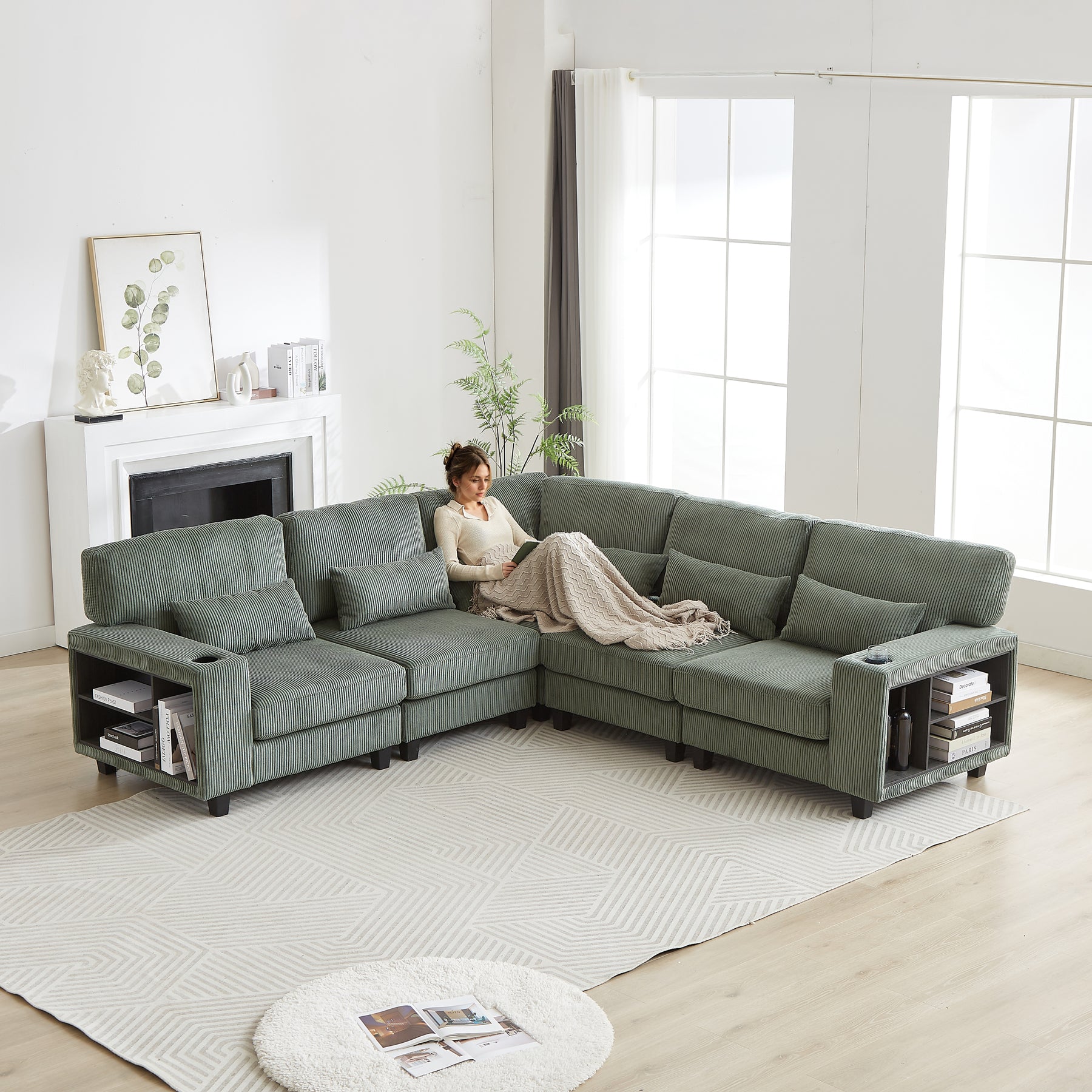 102.75*102.75' L-Shaped Modular Sectional Sofa, Modern Corduroy Sectional Sofa, Arm with Storage With Cup Holder 5-Seat Convertible Sectional Sofa for Living Room, Bedroom, Lounge and Projection Room