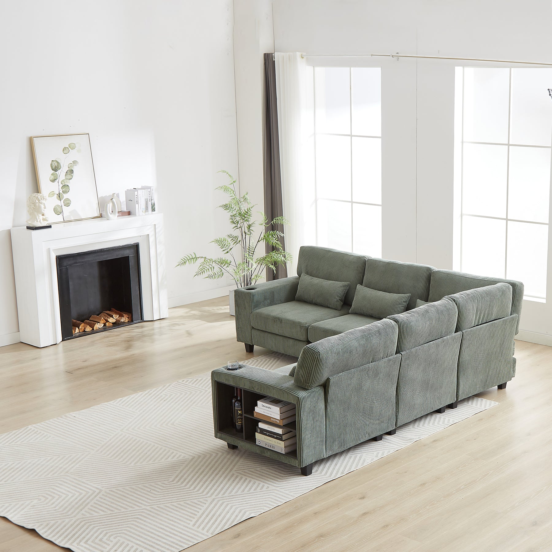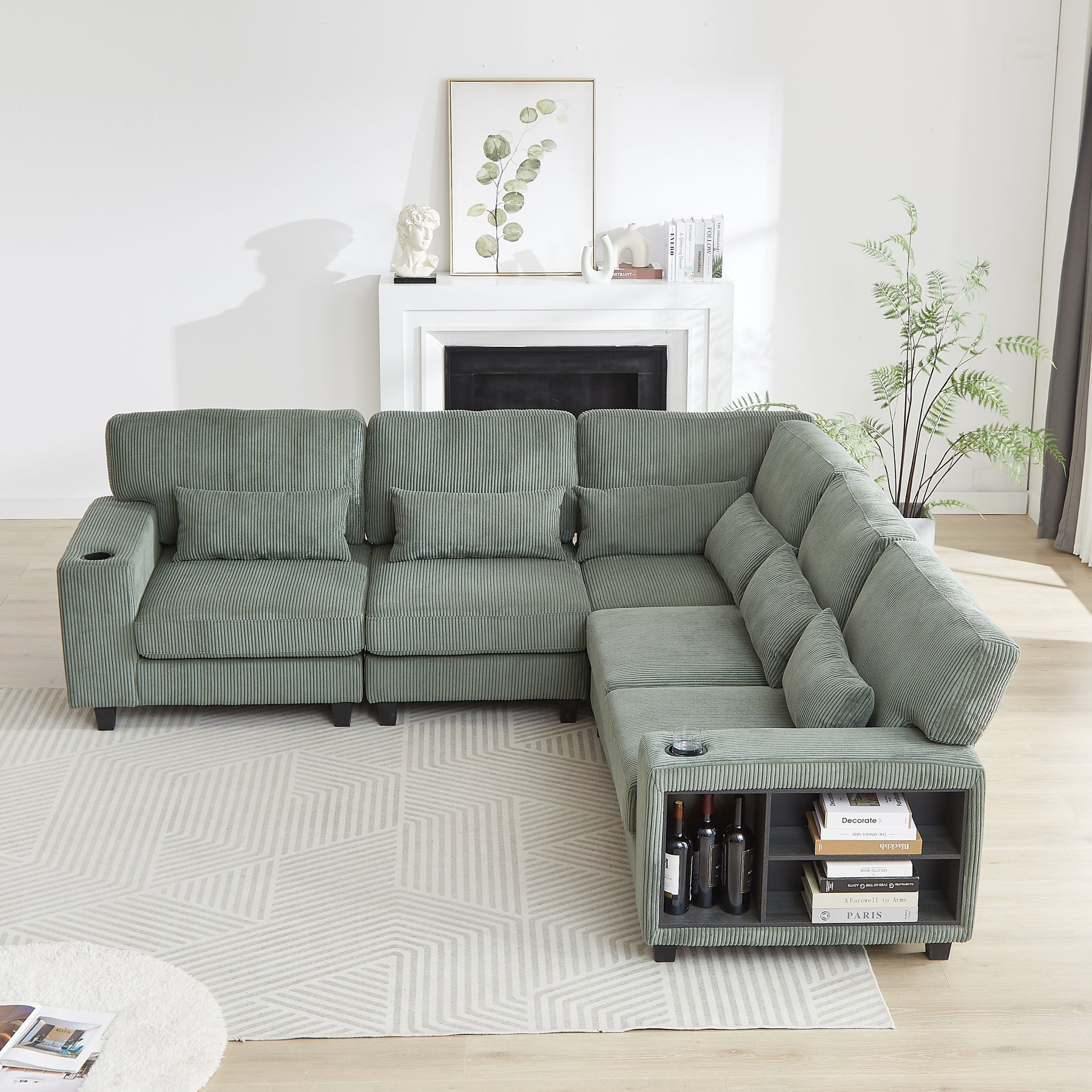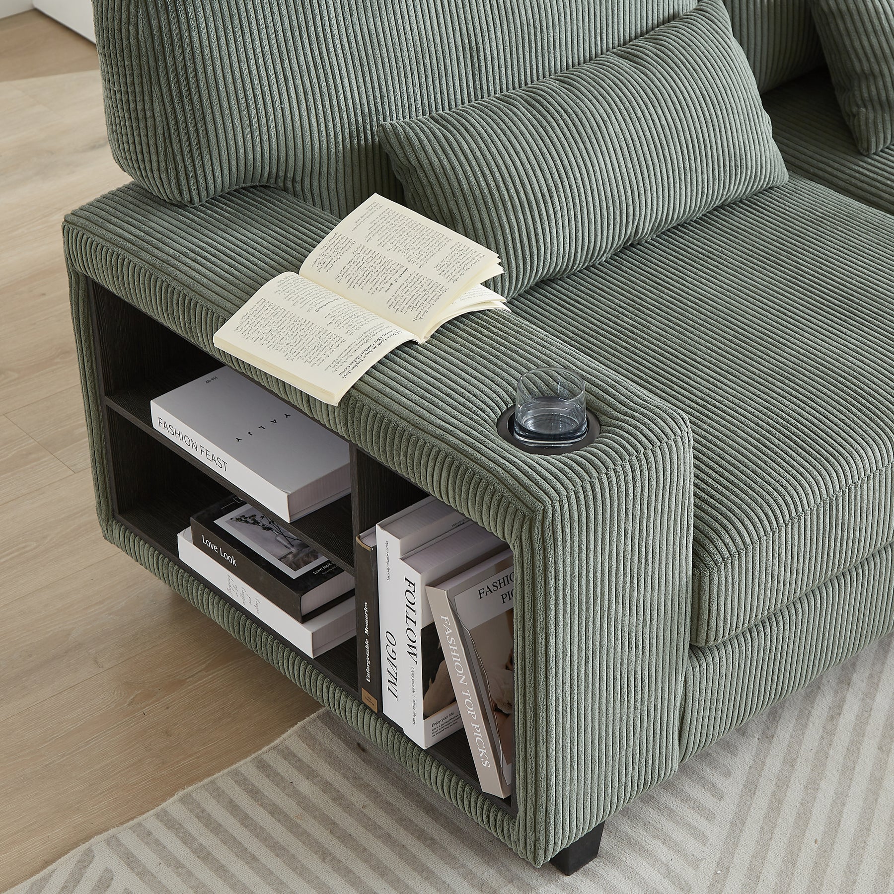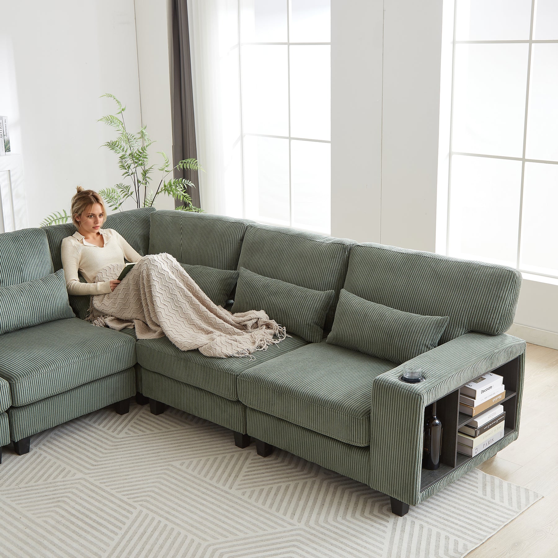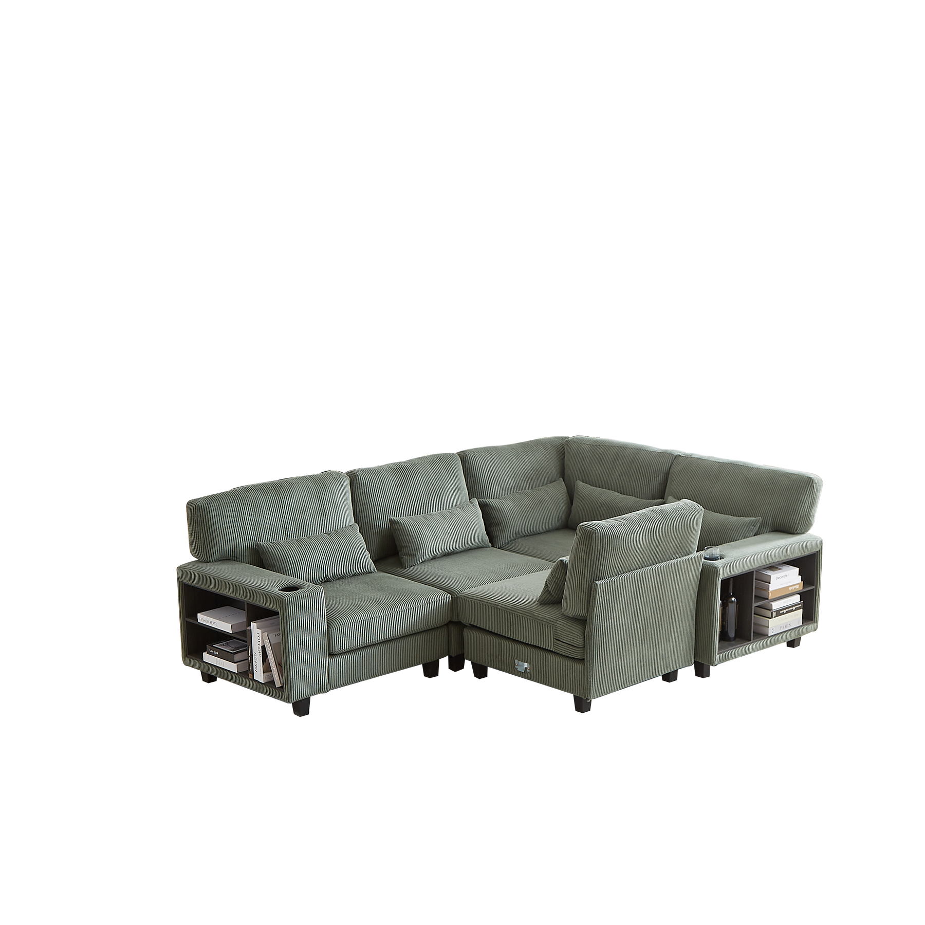 102.75*102.75' L-Shaped Modular Sectional Sofa, Modern Corduroy Sectional Sofa, Arm with Storage With Cup Holder 5-Seat Convertible Sectional Sofa for Living Room, Bedroom, Lounge and Projection Room