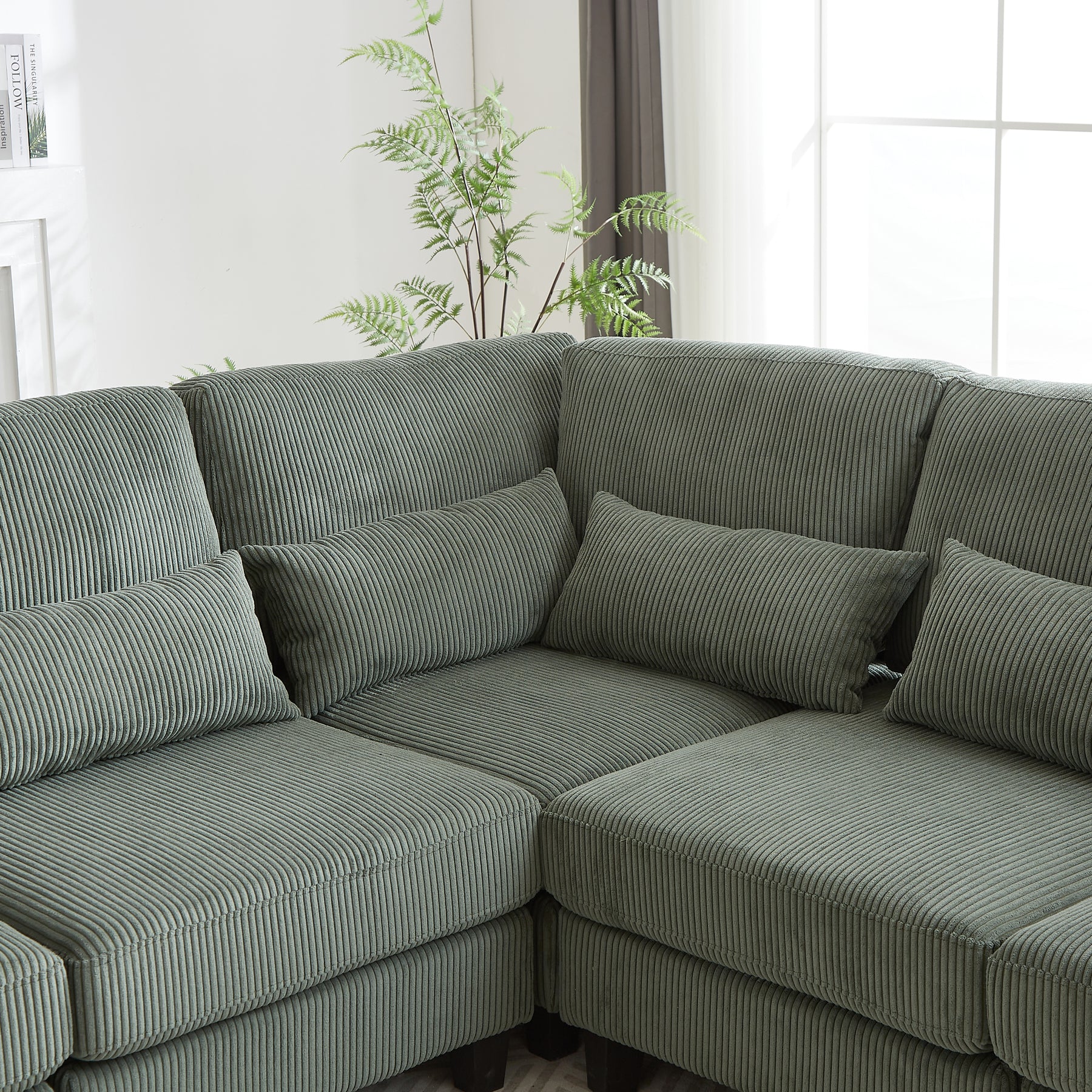 • Combining contemporary style with plush comfort, this L-shaped sectional sofa comes with five cushions and five lumbar pillows, as well as cozy corduroy upholstery to give it a classically chic look, and sturdy plastic feet to provide stability for a sofa that's perfect for your apartment, home office or conference room.