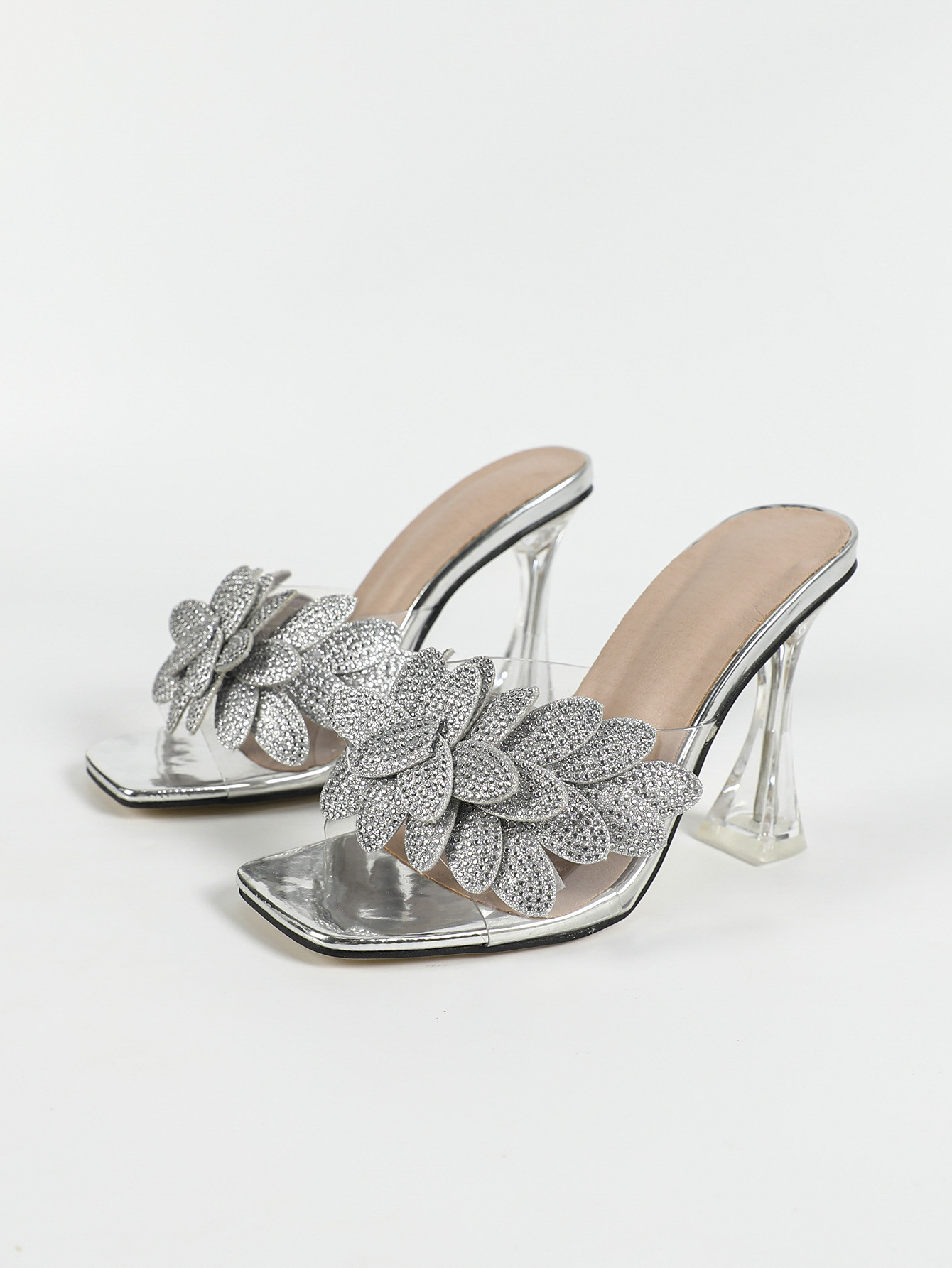 Arrival Bow Rhinestone Slippers High Heel Open Toe Women Transparent Crystal Heel plus Size Sandals
