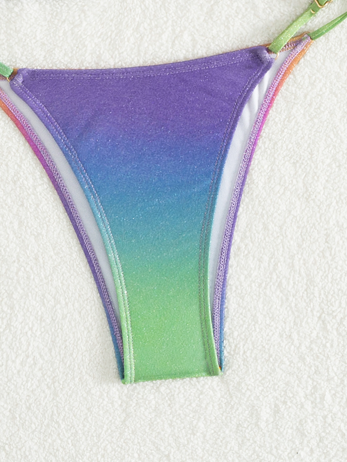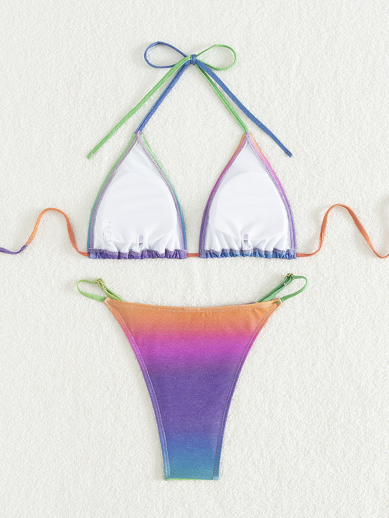Arrival Triangle Bag Split Two Piece Set Swimsuit Lace up Halterneck Backless Sexy Bikini Gradient