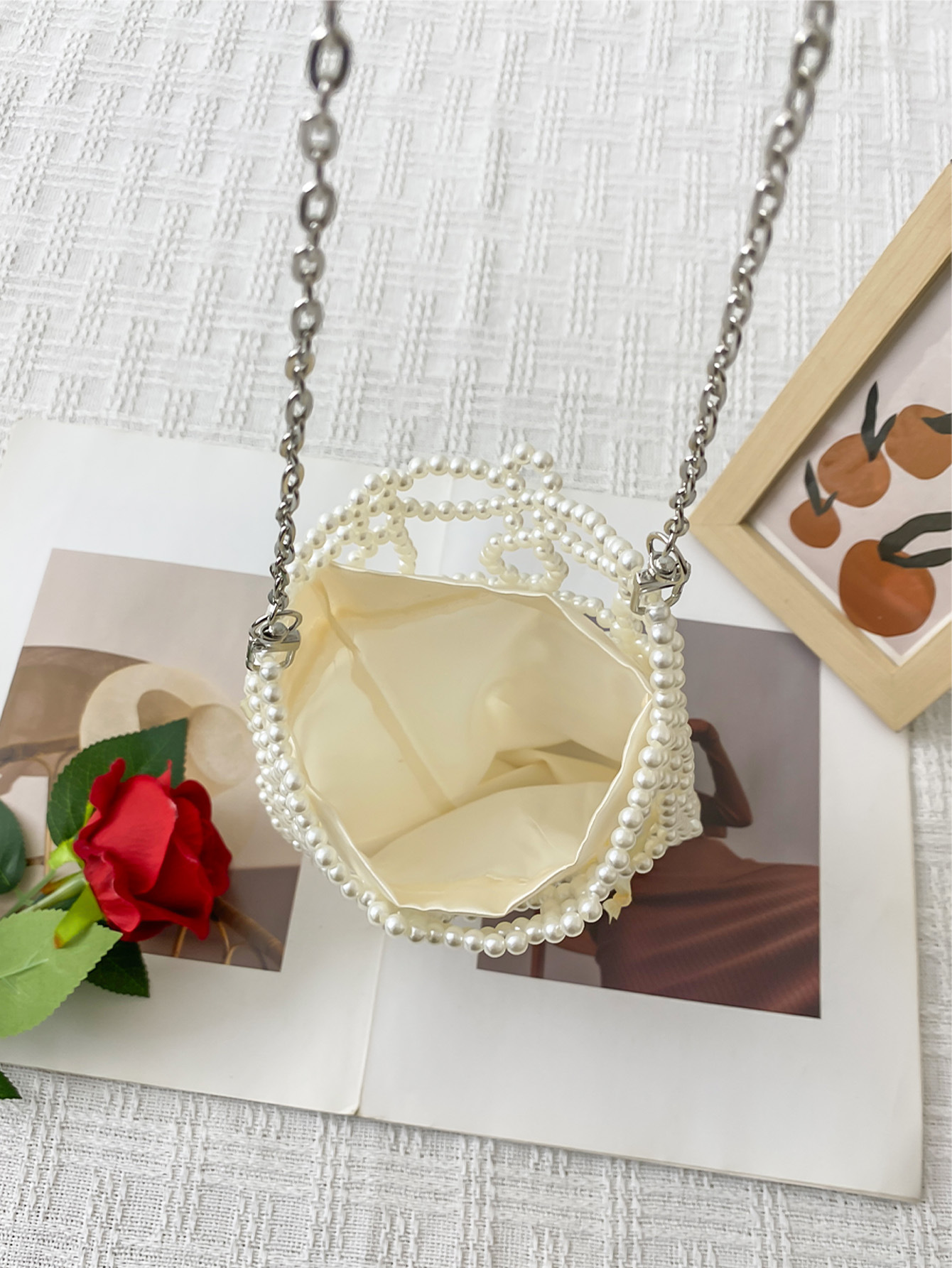 Artistic Fairy Floral Cutout Woven Beads Imitation Pearl Advanced Texture Mobile Phone Lipstick Chain Cross Body Bag