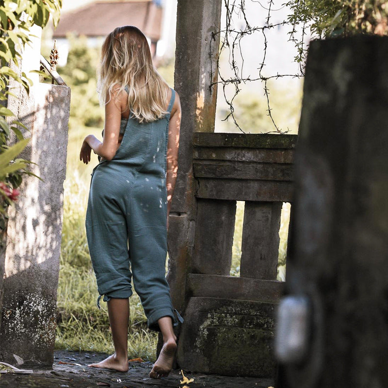 Autumn Casual Beach Trousers Solid Color Wide Leg Jumpsuit Playsuit Women