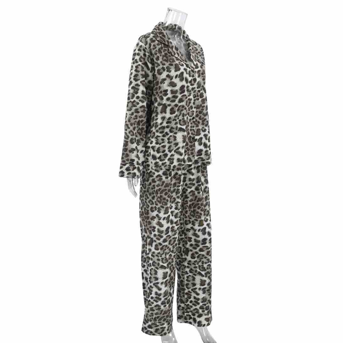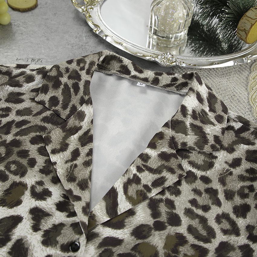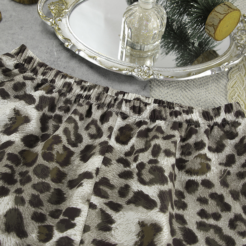 Autumn Satin Leopard Print Soft Comfortable Pajamas Long Sleeved Trousers Women Homewear