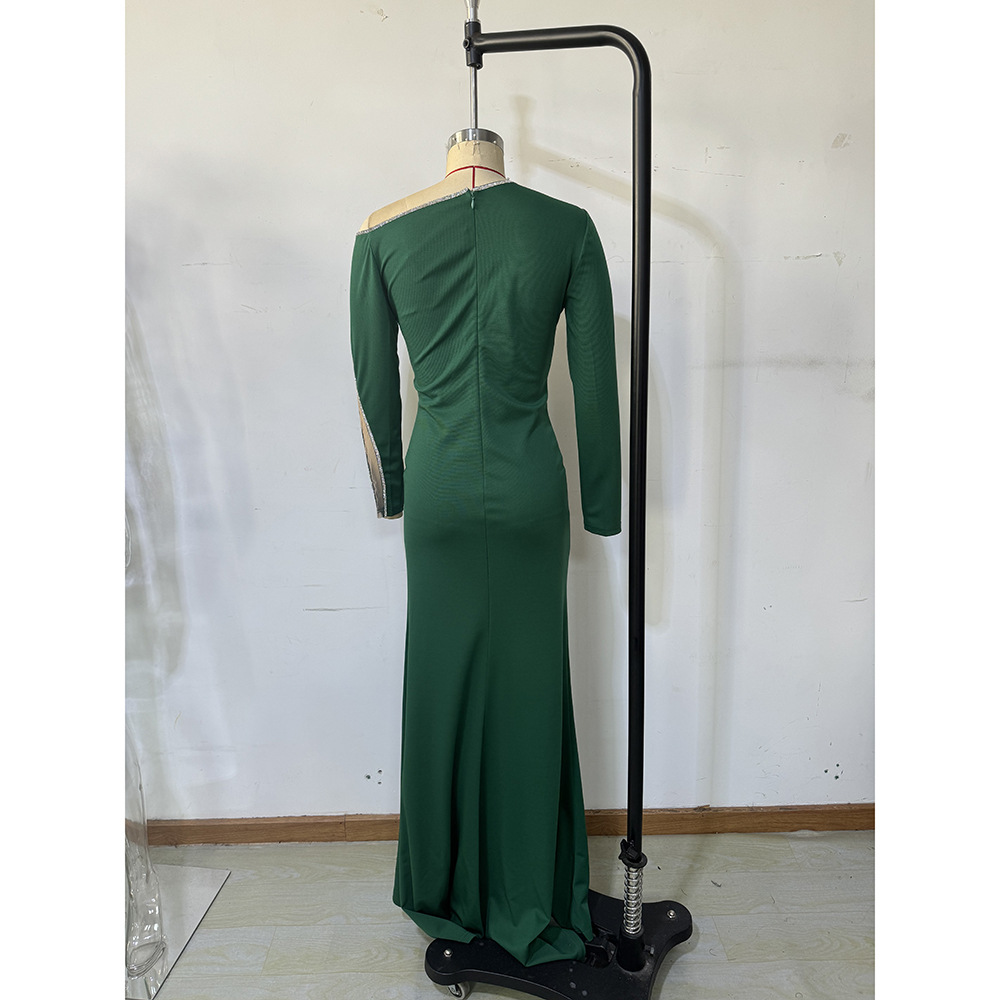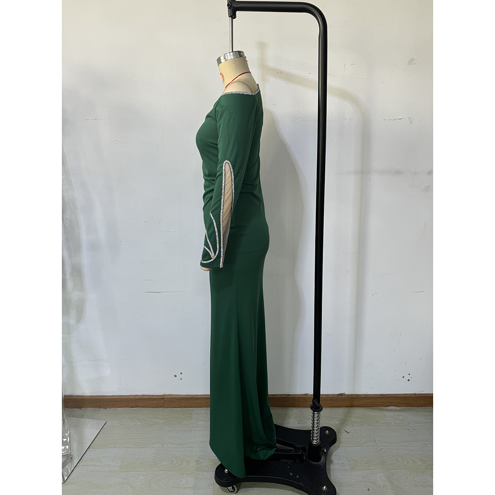 Autumn Winter Dress Sequin Stitching Slim Sheath Party Long Sleeve Evening Dress