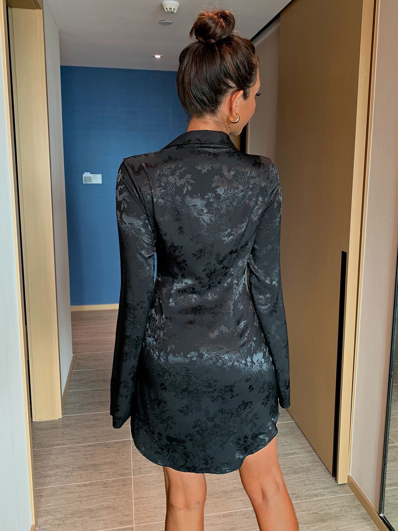 Autumn Winter Sexy Popular Floral Jacquard Knot Front Shirt Dress