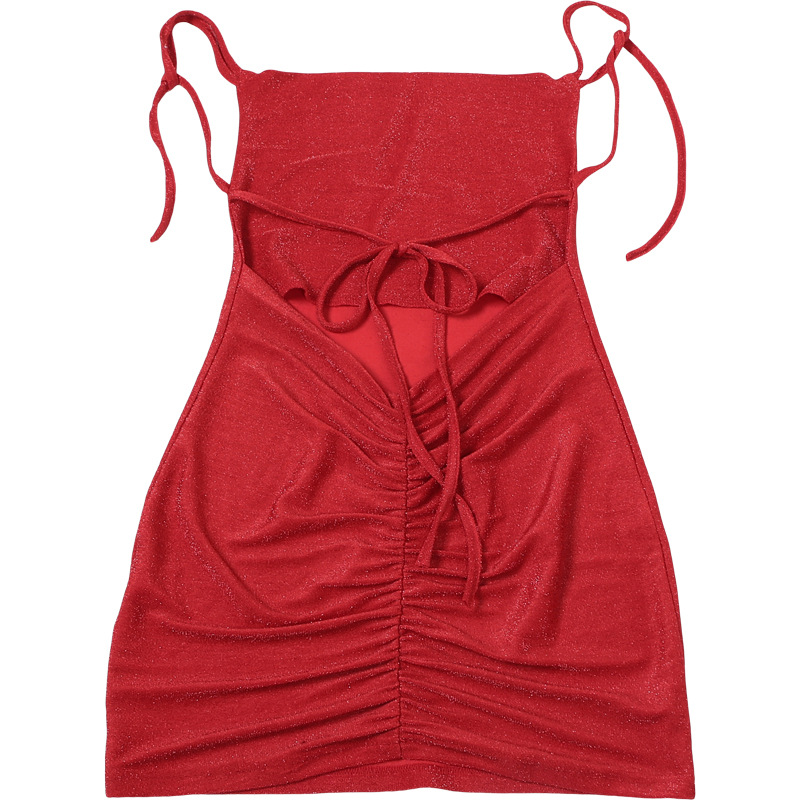 Autumn Winter Women Clothing Sexy Lacing Backless Solid Color Ruffle Hip Slim Fit Dress