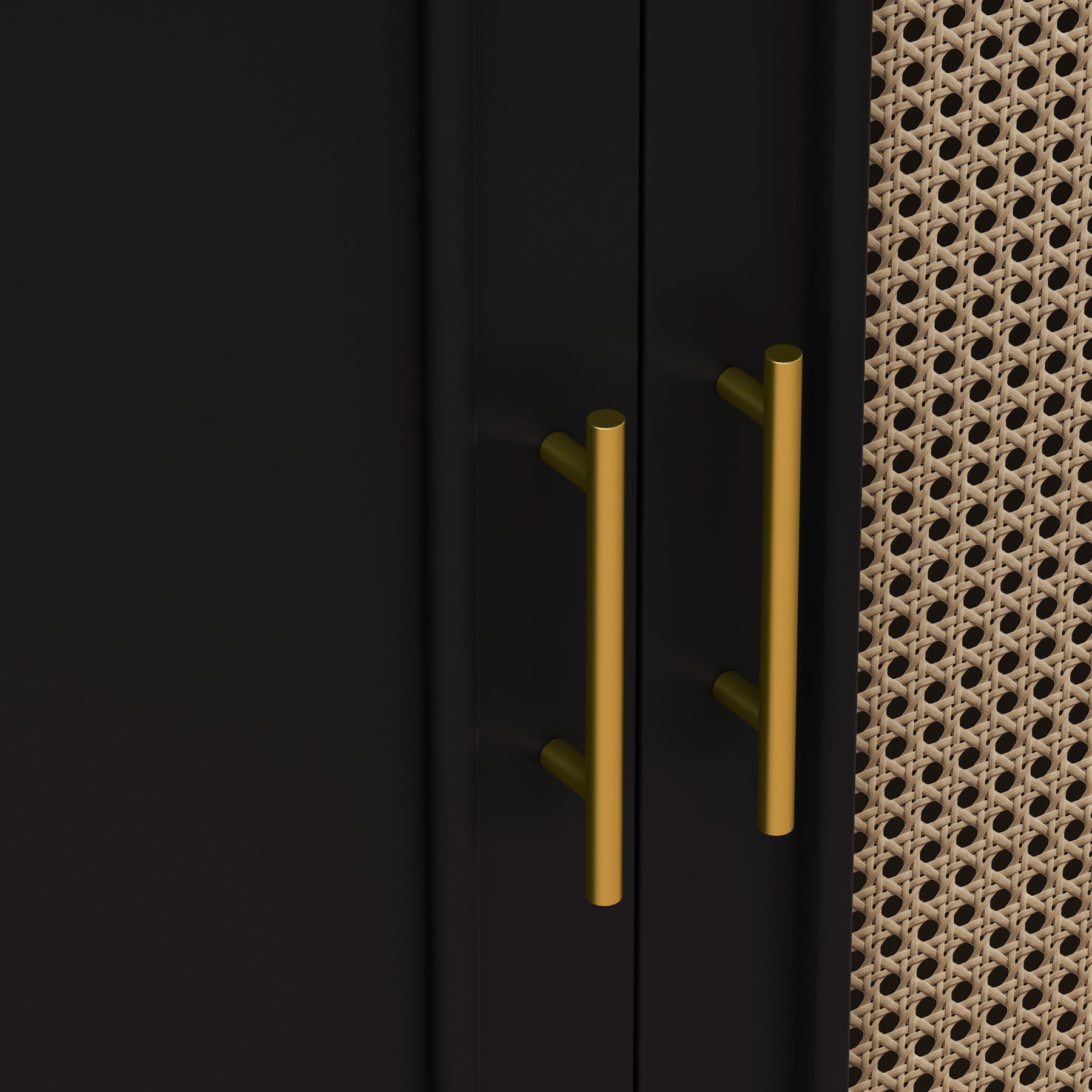 59.84' Vintage Four-Door Cabinet, Plastic Rattan, Suitable For Living Room, Dining Room, Bedroom(Black)