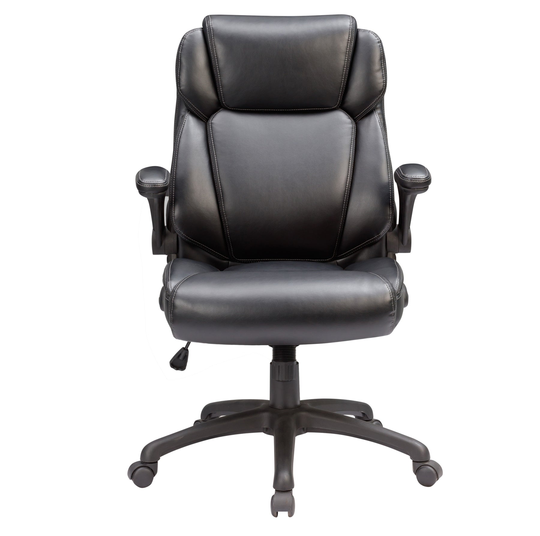 No two workdays are the same, so we've equipped this chair with adjustable armrests effortlessly flip them up or down, tailoring your seating experience to your day. The easy gas lift height adjustment allows you to find your sweet spot, ensuring you're always the right height for peak performance. Glide through tasks effortlessly with the 360 degree swivel function and castor wheels designed for seamless rolling. The butterfly mechanism and 24'H back with padded headrest adapt to your movements to provide dynamic support for your body during those long workdays.