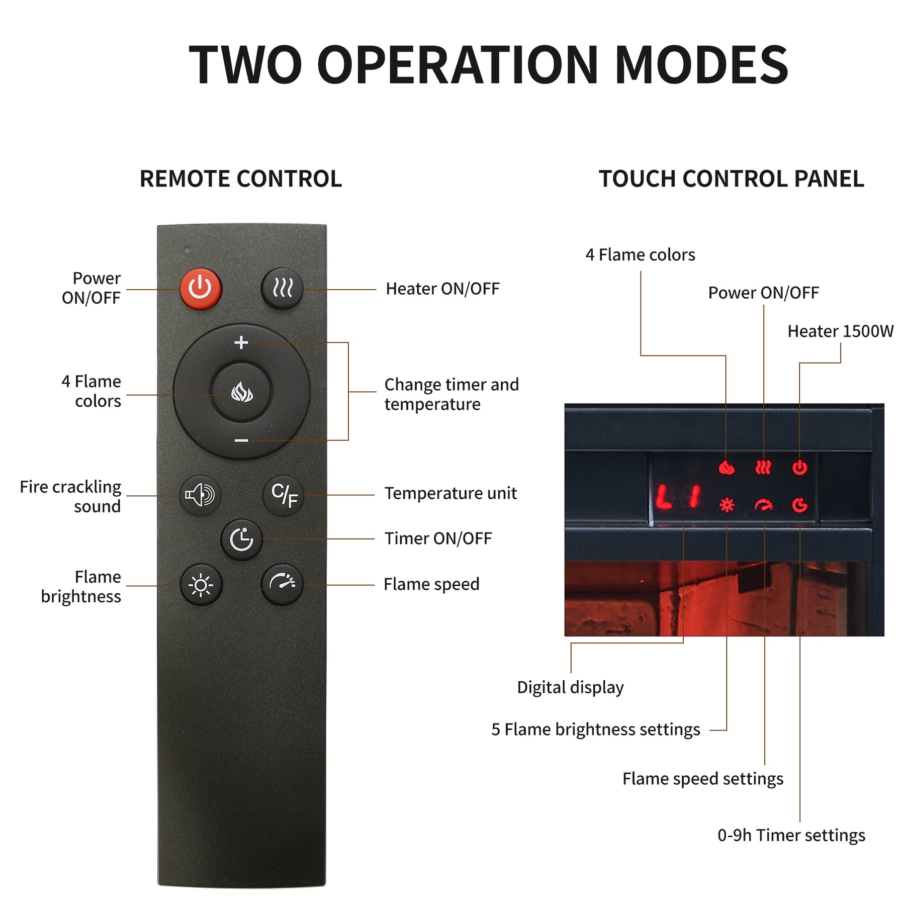 • The flame and ember bed brightness can be adjust with 5 levels,flame speed can be adjust with 3 levels