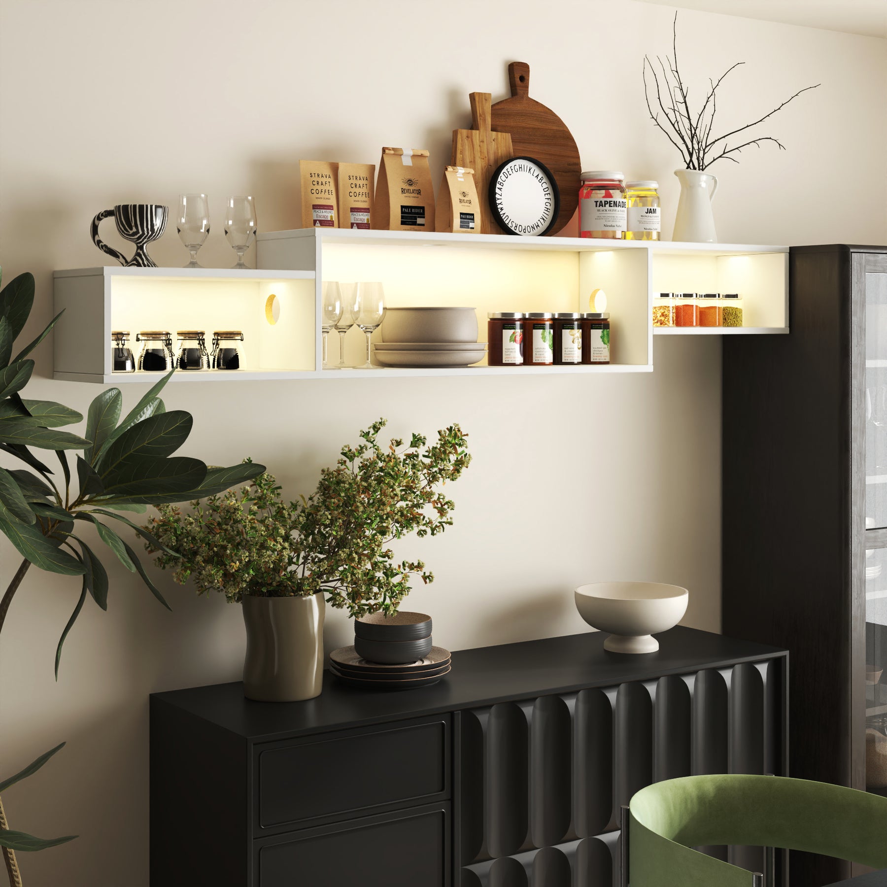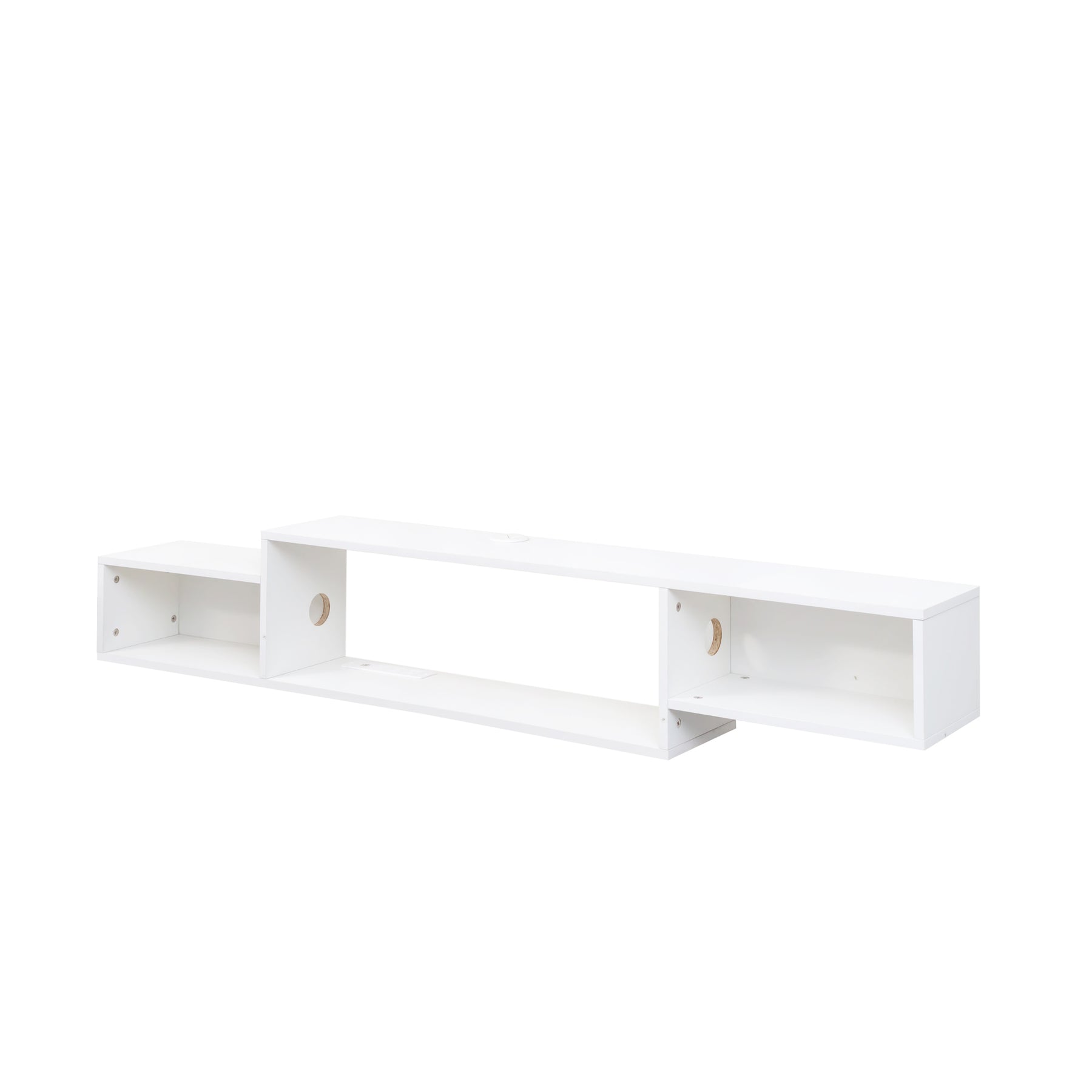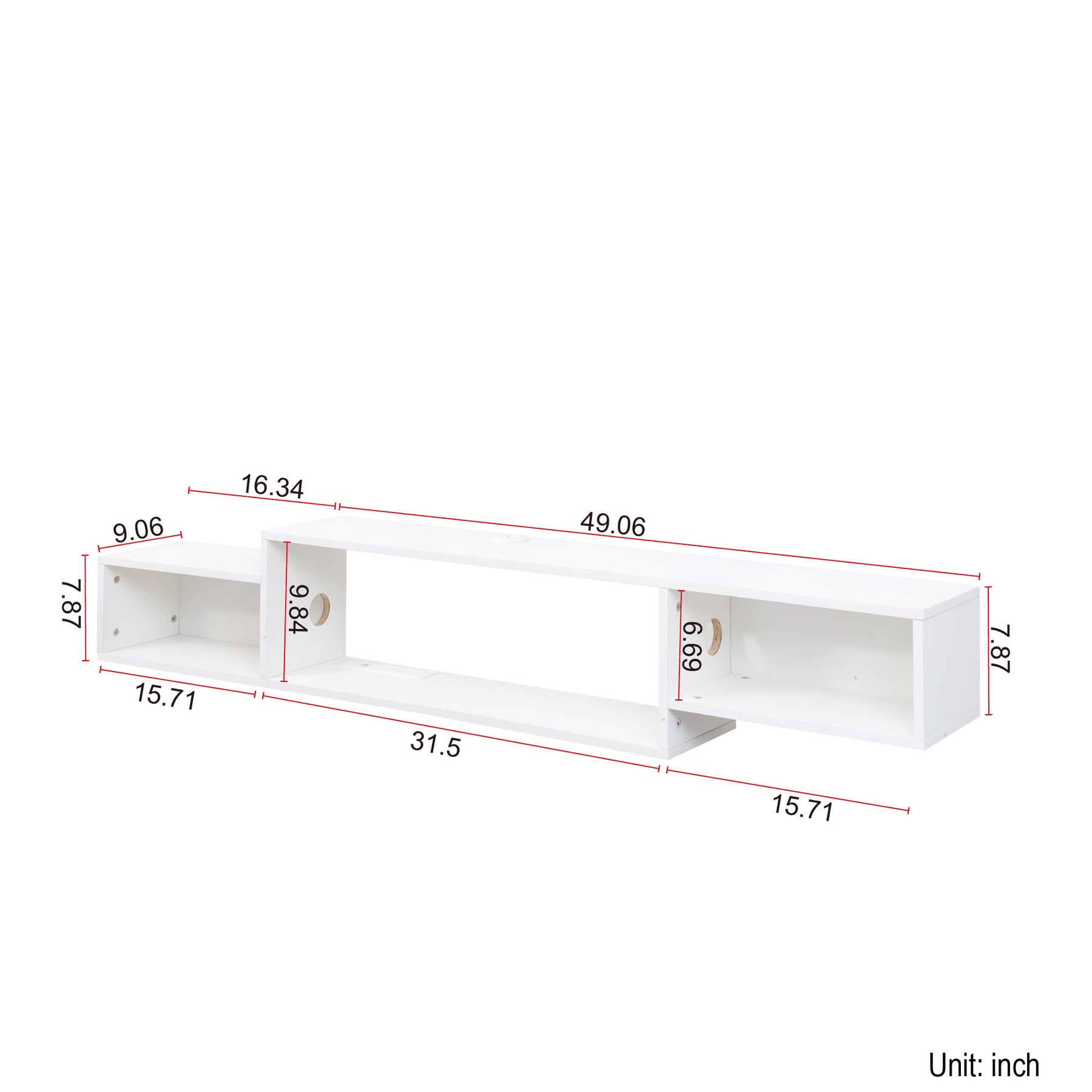 • The wall mounted floating design is more stylish and space saving. Adds a modern touch to most home decorations. Please do not place the TV directly on the shelf.