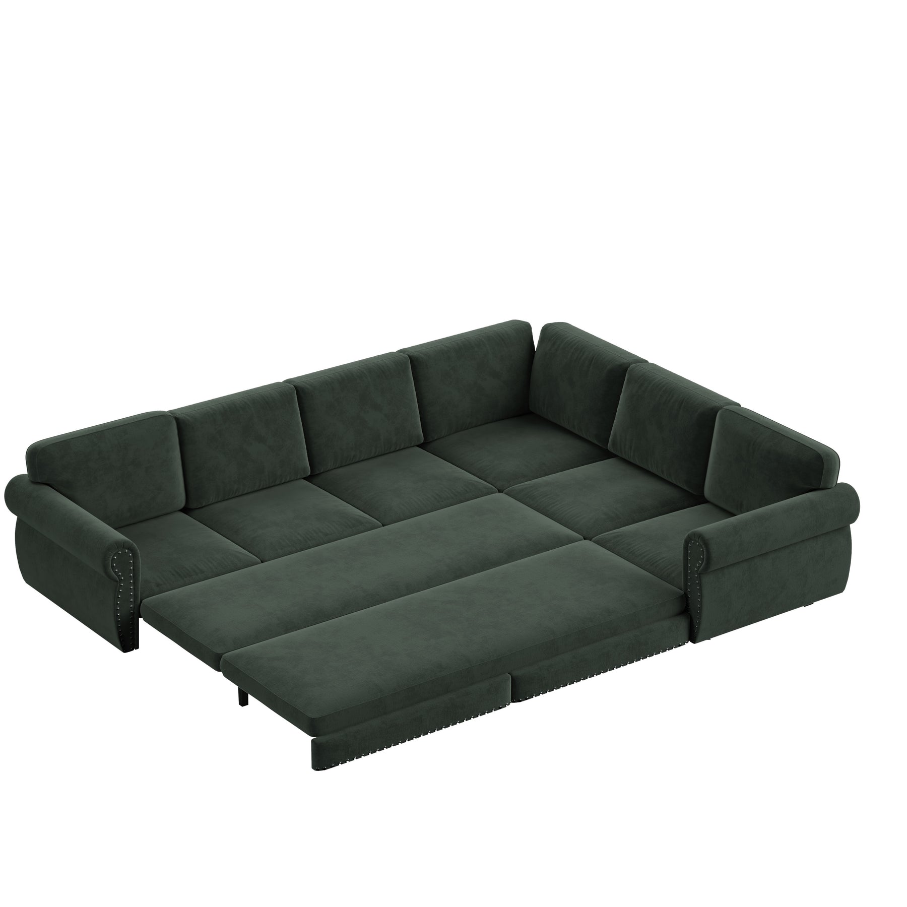 - Multi-function design:Our sofa transforms effortlessly into a oversizes-size bed(accommodating 5 people for comfortable sleeping),a 6-seater couch, or a stylish chaise lounge. Features classic rivet decoration, perfect for compact living areas and offices, it combines practicality with elegance. Whether it's family gatherings, working from home, or relaxing, this sofa bed meets your needs in all aspects with excellent comfort and support, becoming a reliable multifunctional partner in your life.