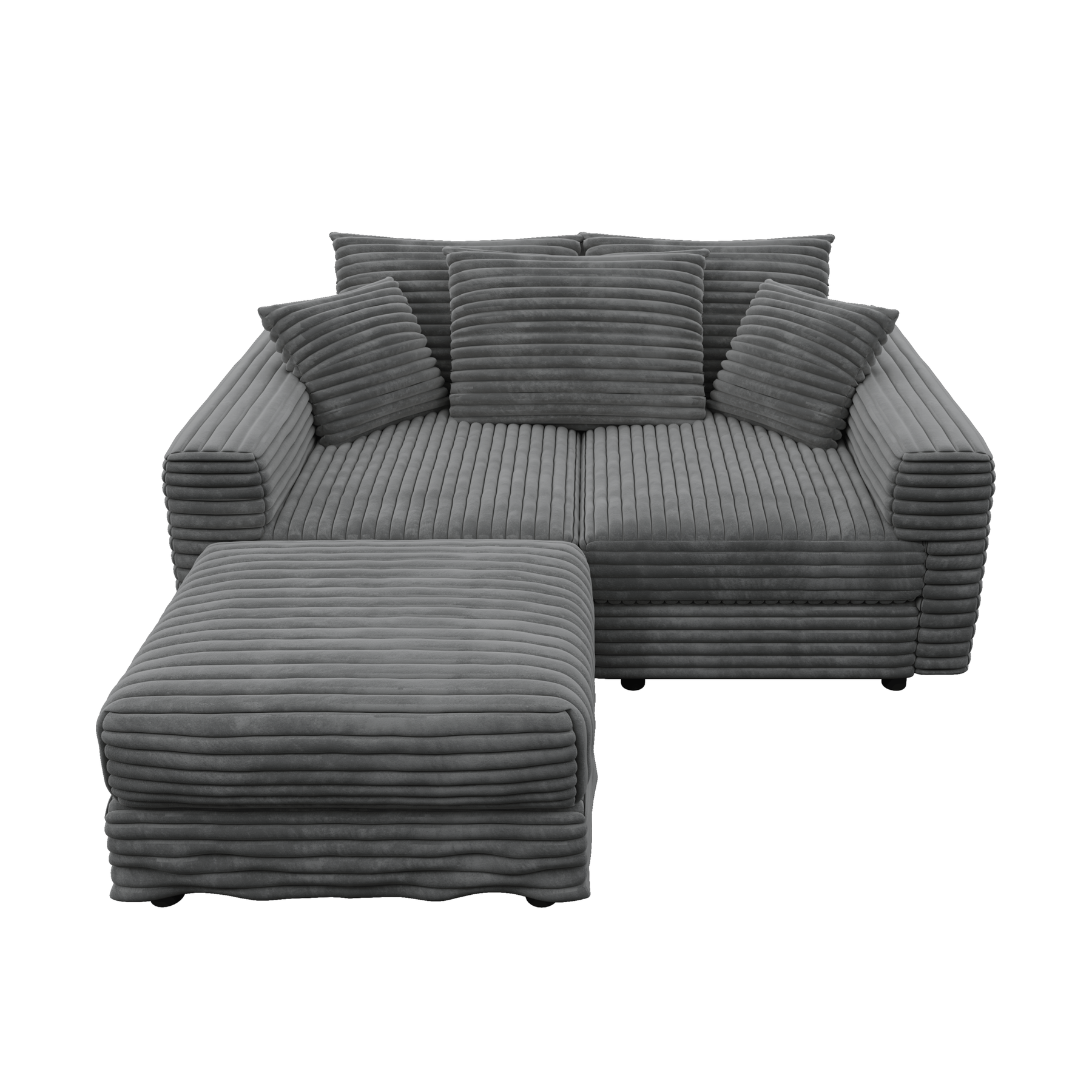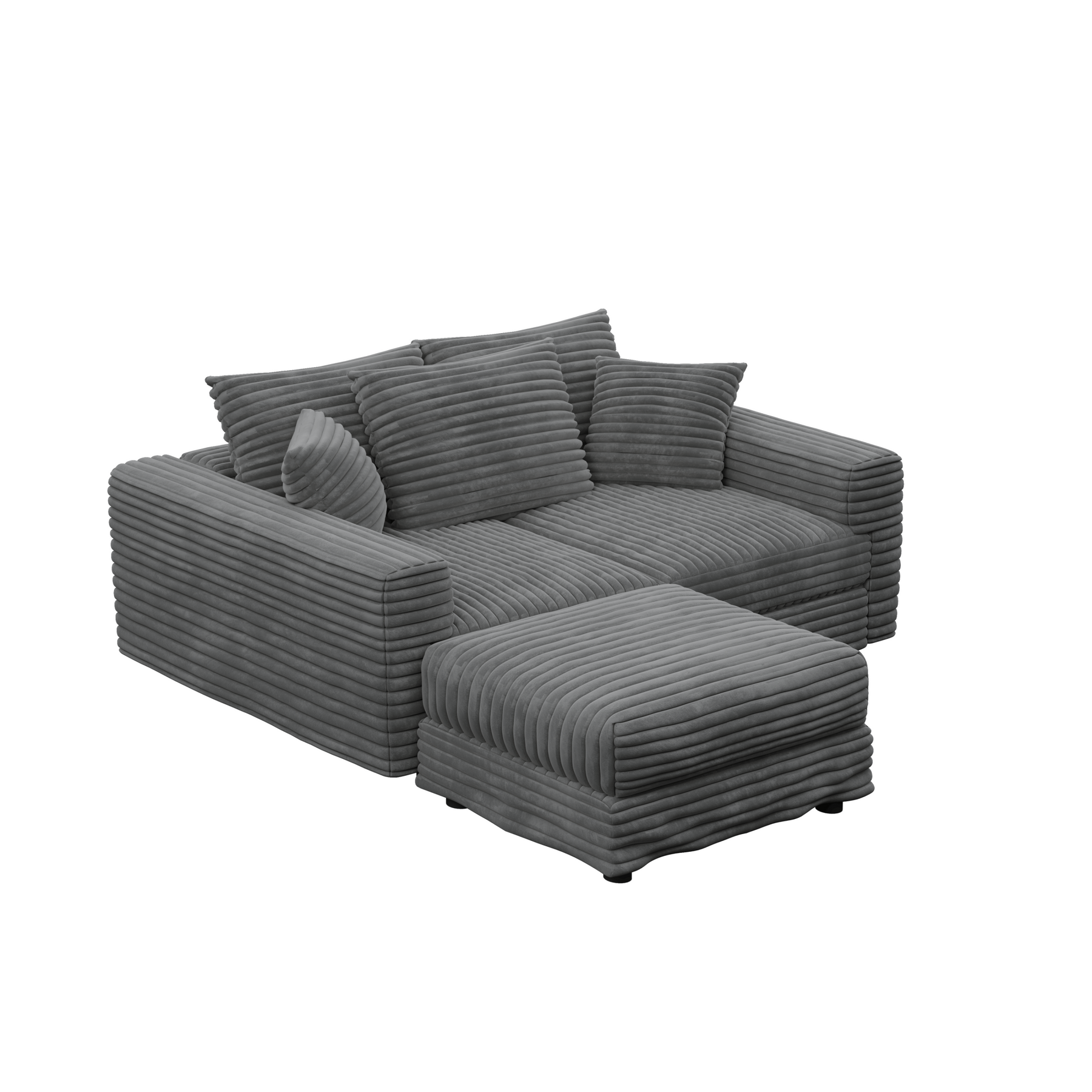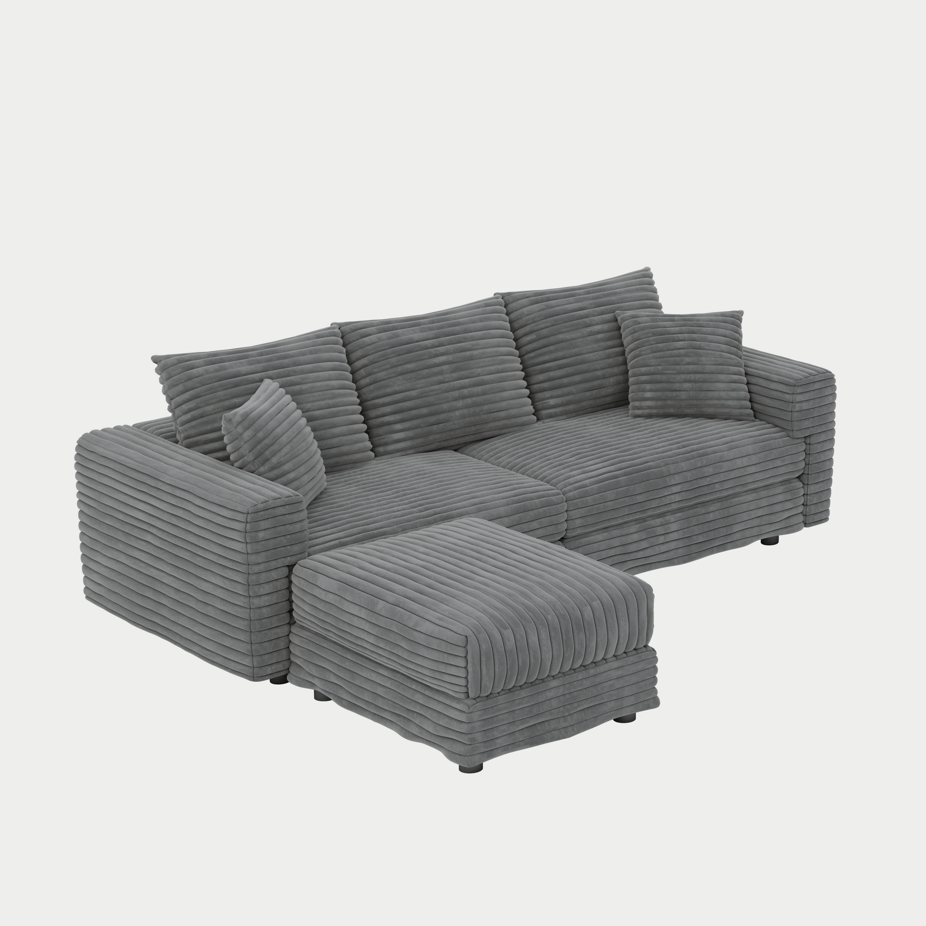 82.7 ' Plush Corduroy 3-Seat Sofa, Modern Comfy Upholstered Sofa Cloud Couch, Deep Seat Couches with Soft Pillows and 1 Ottomans, Convertible Sofa Lounge Chair, for Living Room,Apartment,Office,Grey