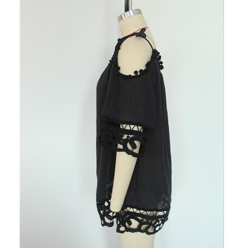 Bamboo Joint Stitching Lace Beach Cover up Sexy Cutout Word Collar Vacation Sun Protection Swimsuit Blouse