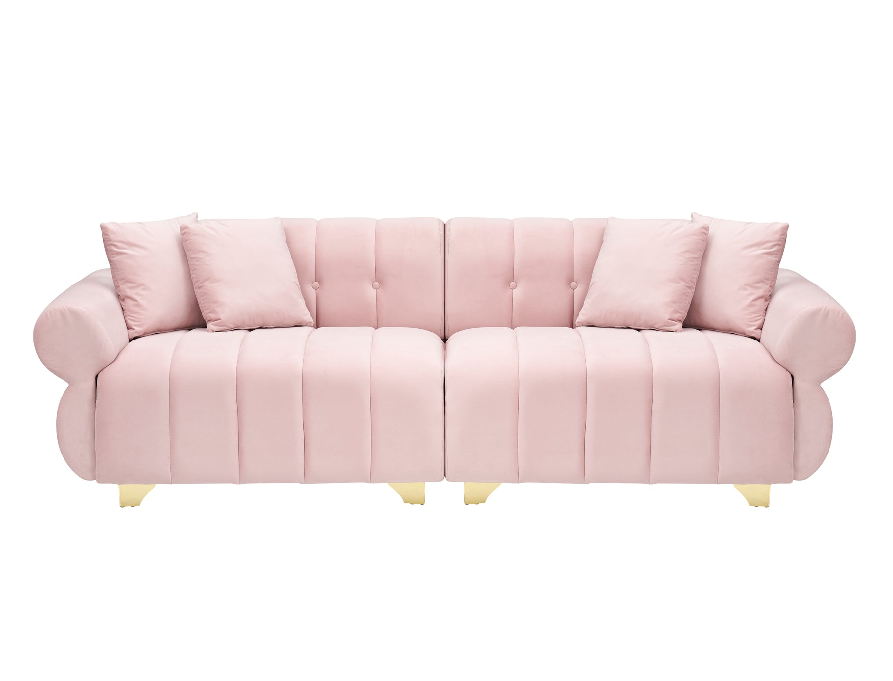 • Fashion metal feet, comfortable backrest design with 4 doll cotton throw pillows, round armrests, stylish and beautiful shape, with different scenes, to meet your rest, sleep, office needs