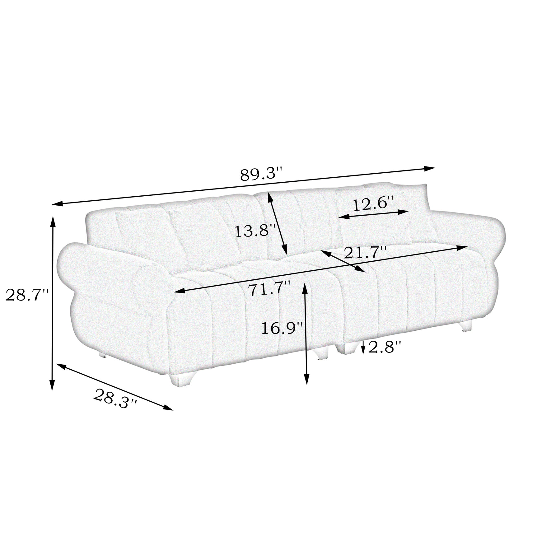 89-inch spring-wrapped cushions, 3 flannelette sofas, stylish metal feet and 4 throw pillows make for a modern living room bedroom