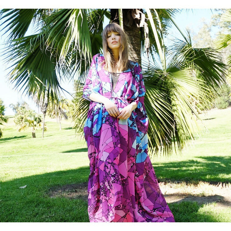 Beach Cover-up Chiffon Printed Cardigan Robe Vacation Beach Dress Bikini Sun Protection Cardigan