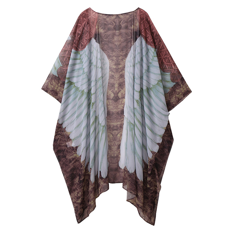 Beach Cover Up Wings Printing Wing Loose Long Long Sleeve Knitted Cardigan Sunscreen Beach Cover Up