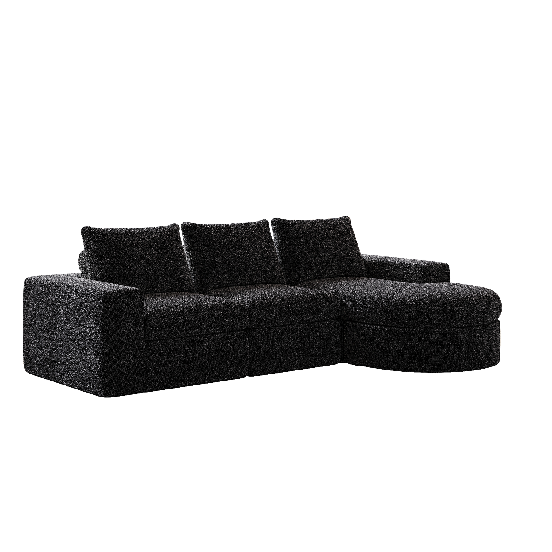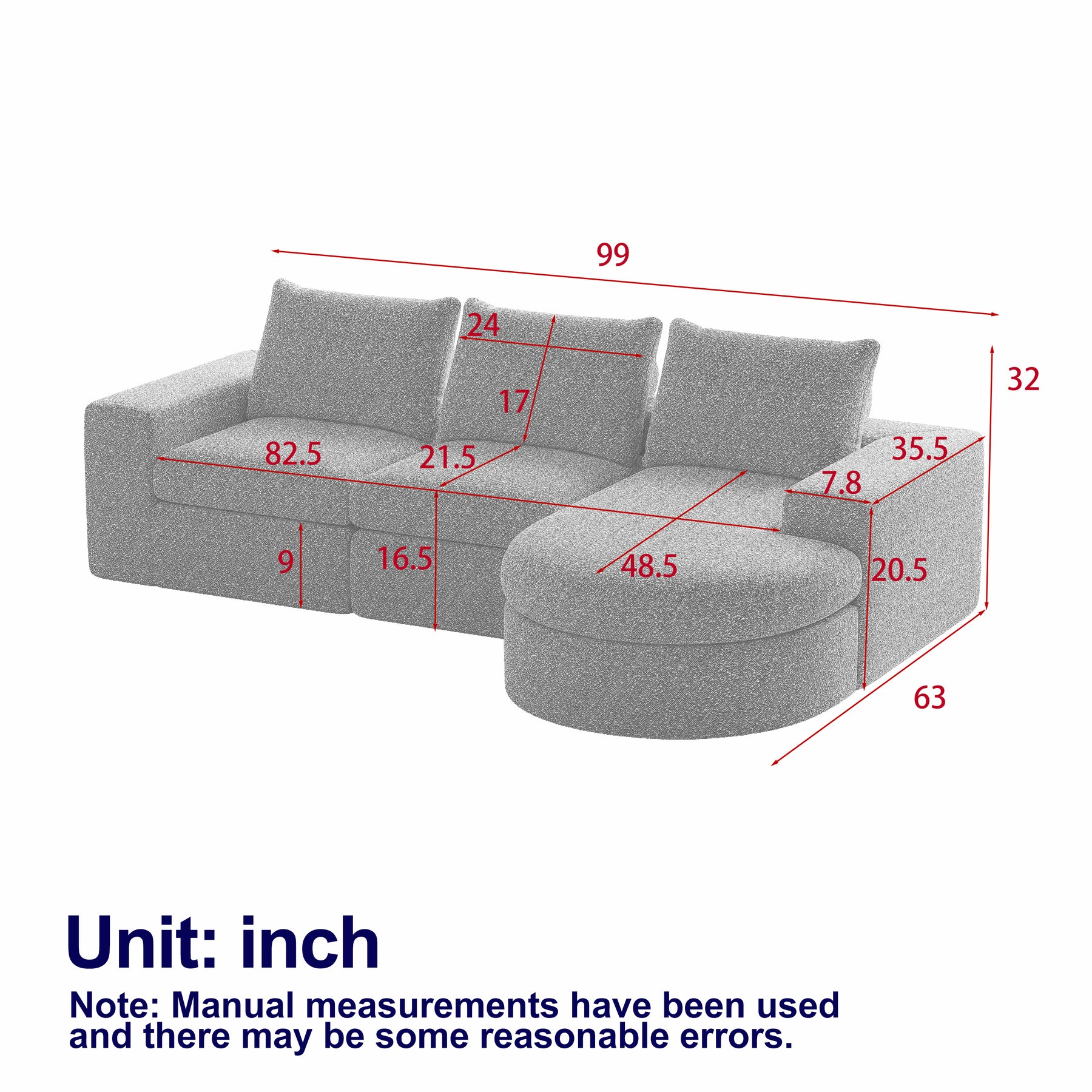 99-Inch Chenille Cloud Curved Sectional Sofa with Chaise, L-Shaped Modern Boneless Couch with Deep Seats, Chenille Sectional Sofa for Living Room and Bedroom, No Assembly Required