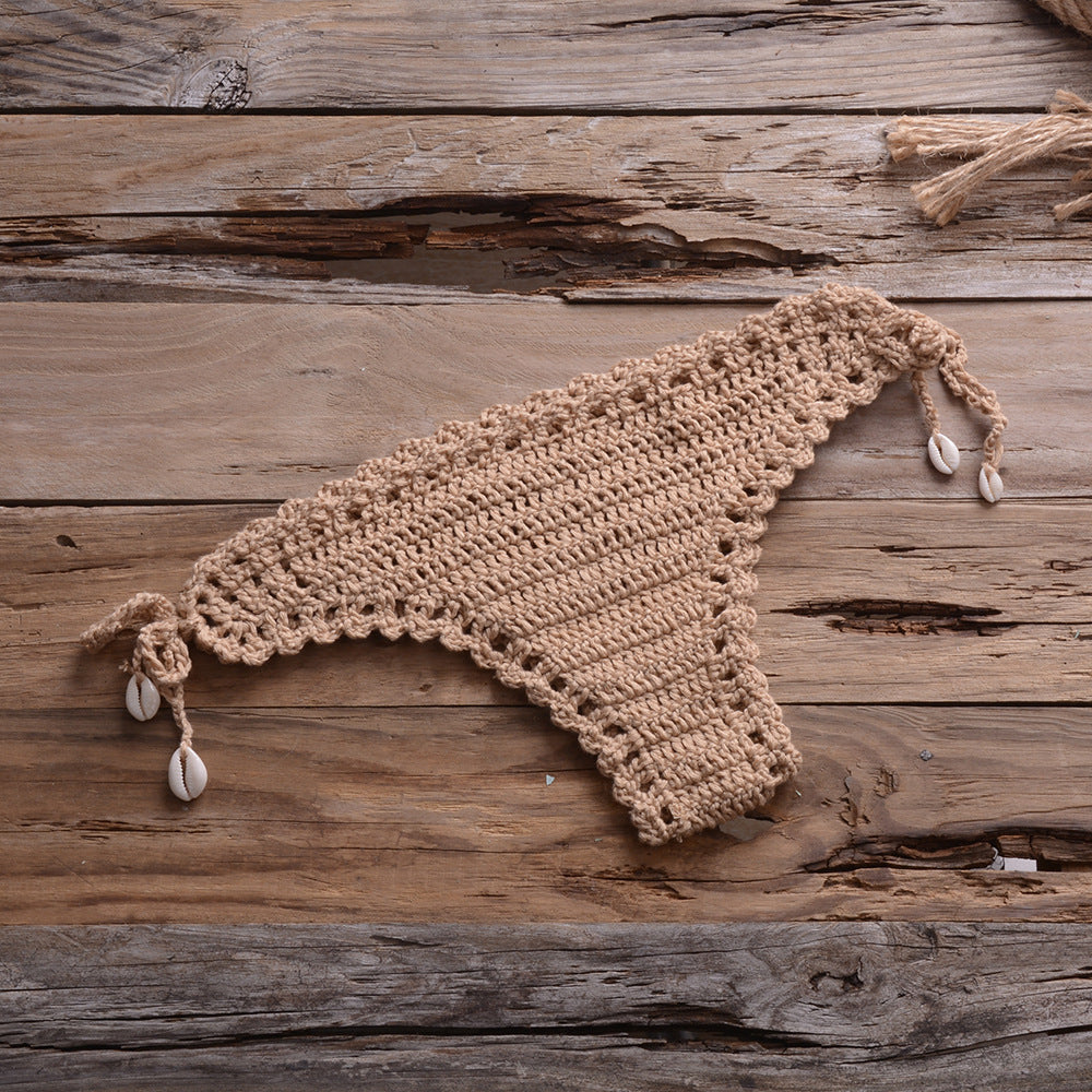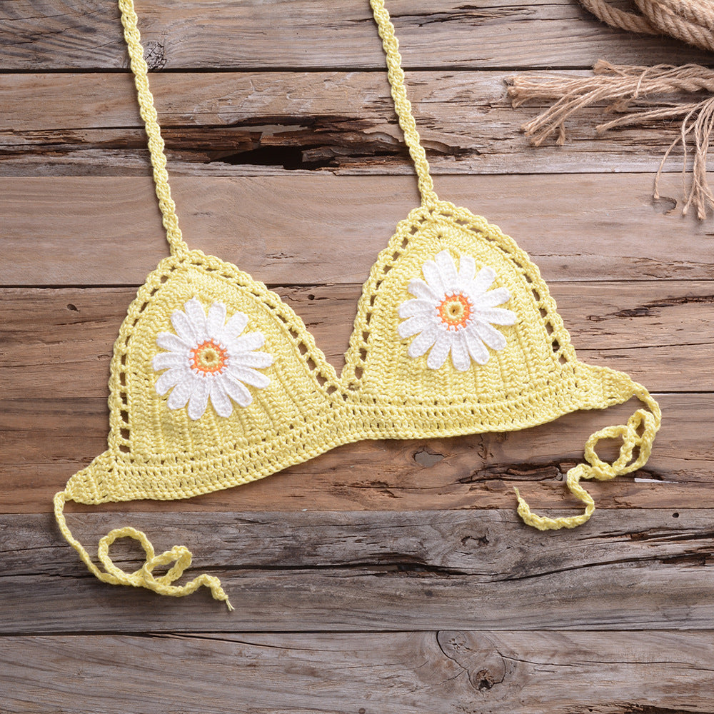 Bikini Handmade Floral Top Shell Pants Briefs Bikini Swimsuit Women