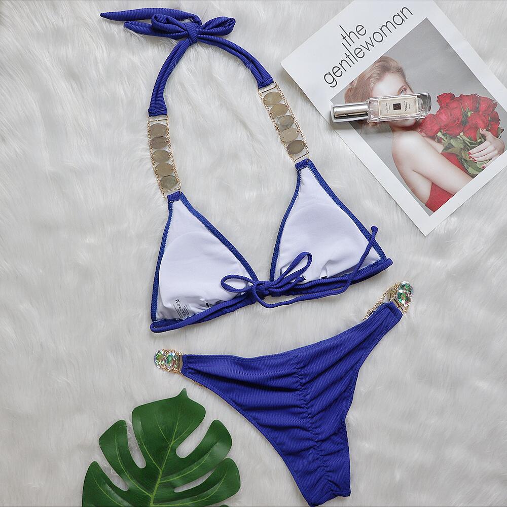Bikini Plain Women Split Strap Luxury Diamond Swimsuit Sexy Metal Chain Accessories Swimwear