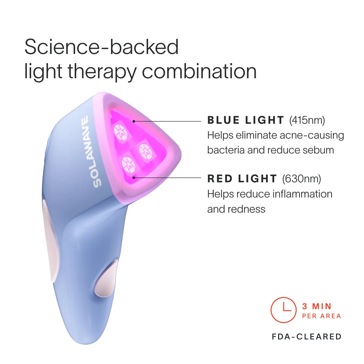 Combat breakouts, pimples, and inflammation with a targeted, two-step routine featuring an FDA-cleared device that combines Blue and Red Light Therapies with soothing, serum-infused Microdart Patches.