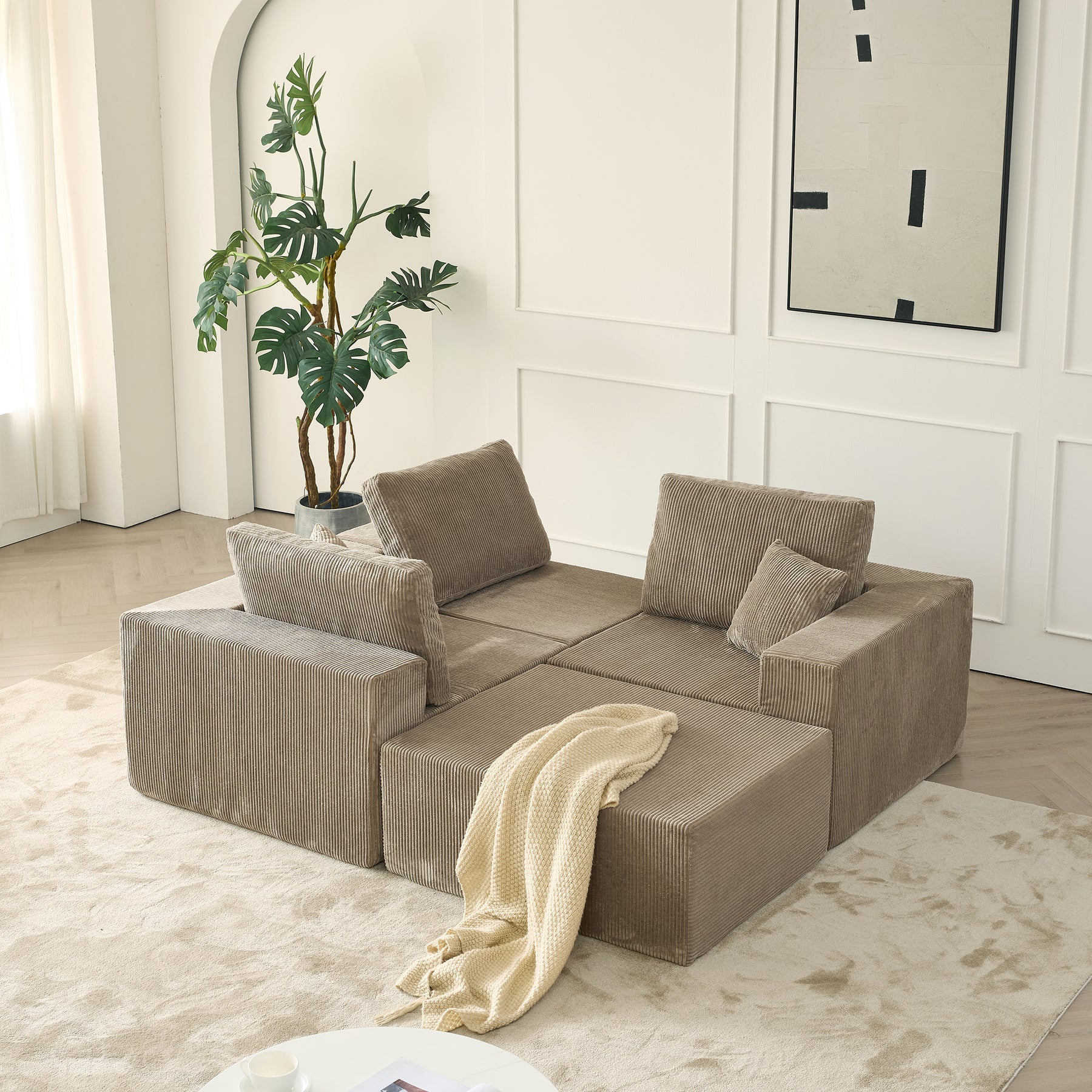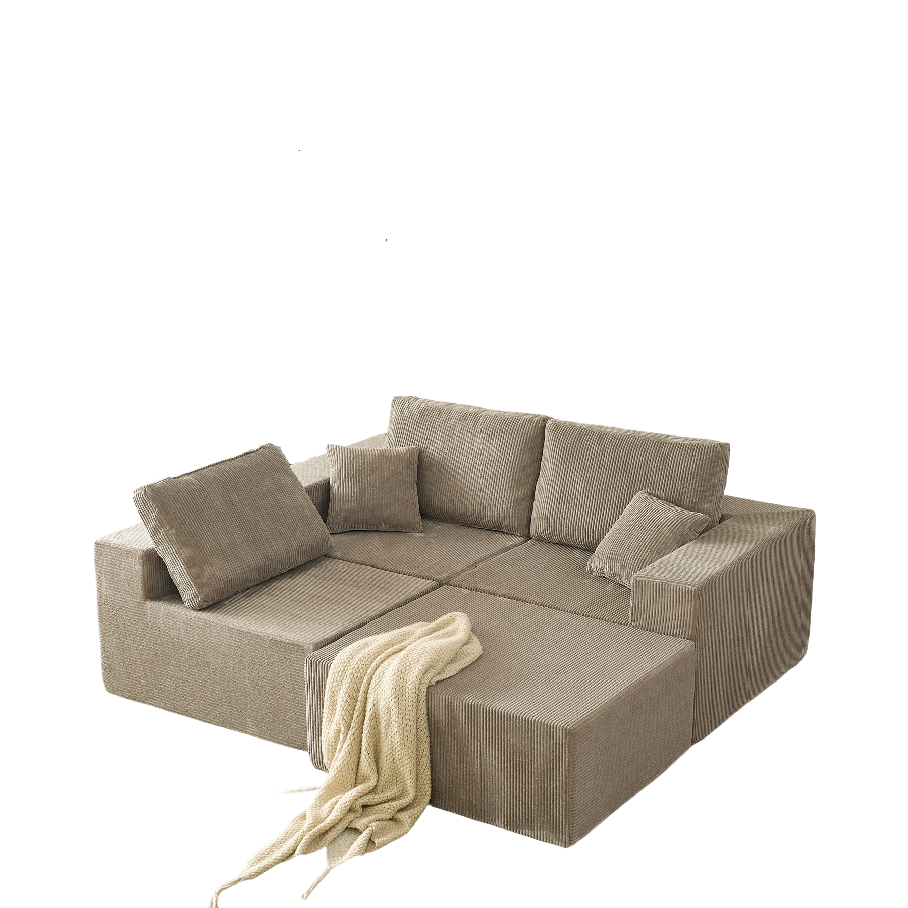 • L Shape Couch: This corduroy boneless couches features extra-wide and deep seats, providing ample room for entertaining guests or enjoying quality family time. With pillow placements and ergonomic lumbar support, these couches for the living room offer a cozy, cloud-like seating sensation that surrounds you in luxury and comfort.