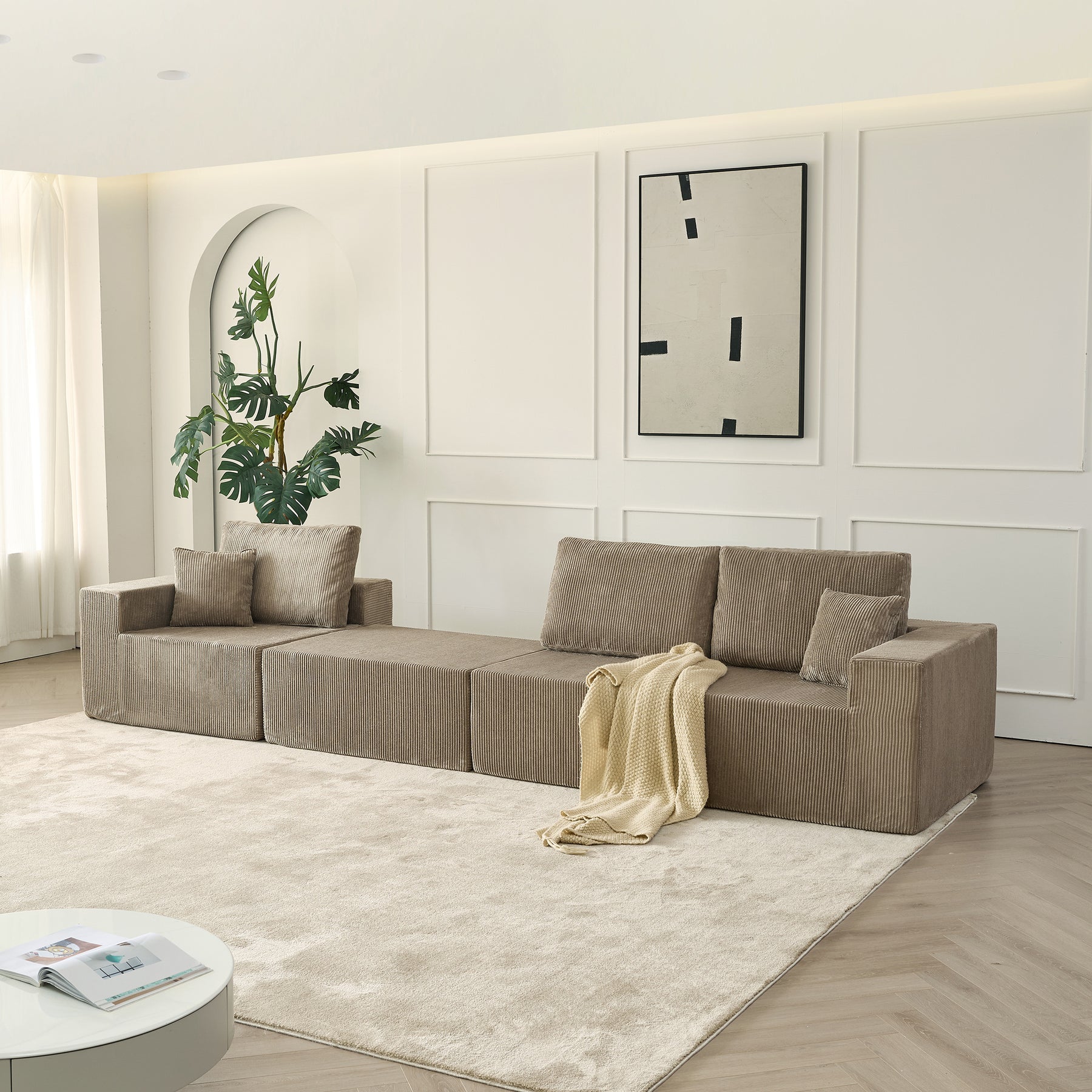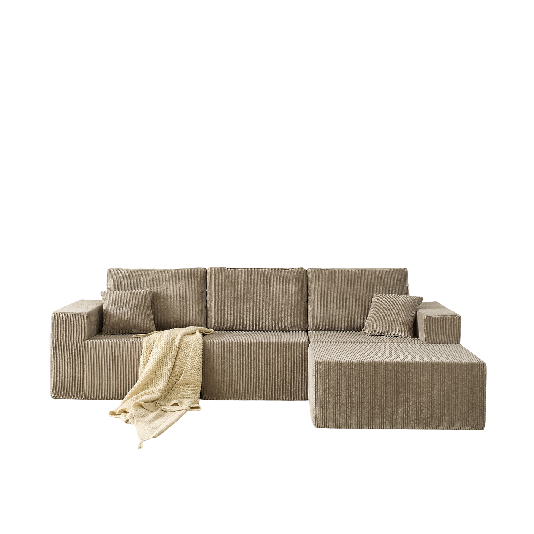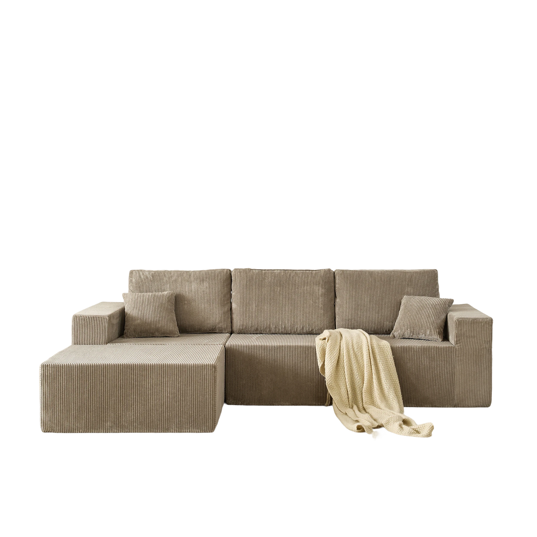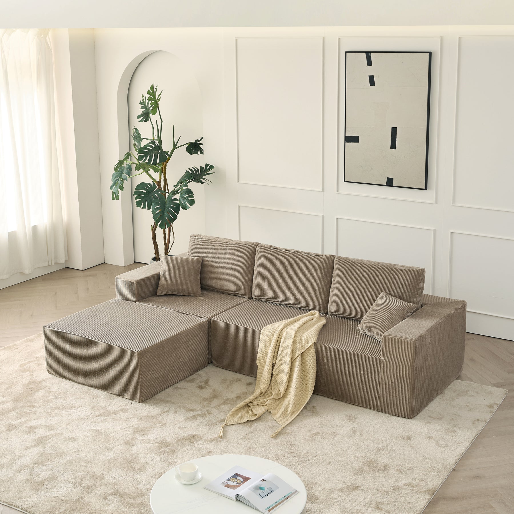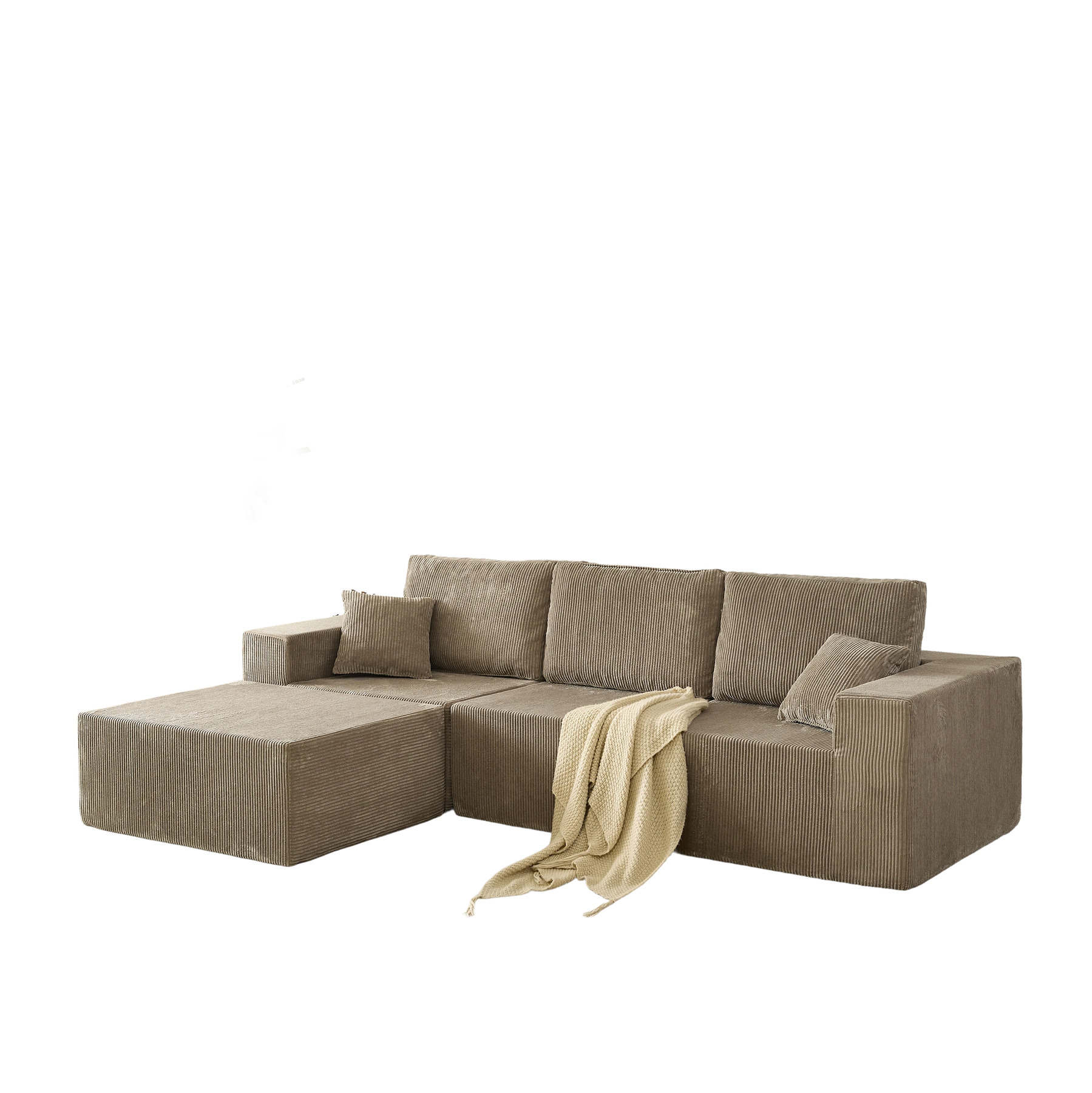 • Luxury Corduroy Fabric: Indulge in our luxurious plush corduroy fabric, which is as soft as silk under your fingertips. The upgraded wrinkle-resistant corduroy fabric adds both warmth and sophistication to any room, while its durable, high-quality material ensures long-lasting comfort for every season. The 3-Seater Sectional Sofa features this premium corduroy fabric, which is not only beautiful but also easy to clean, elevating your living space with elegance and warmth.