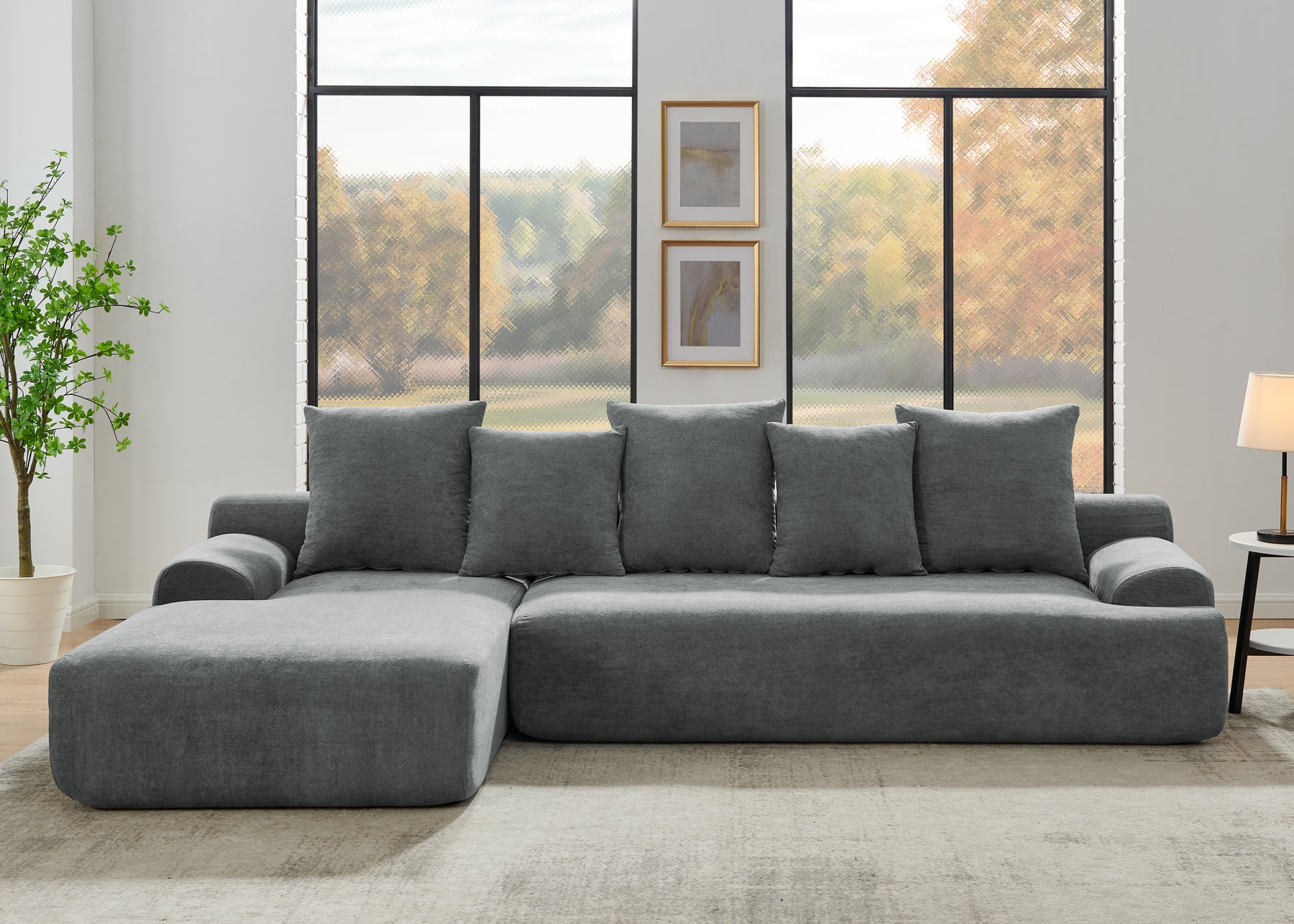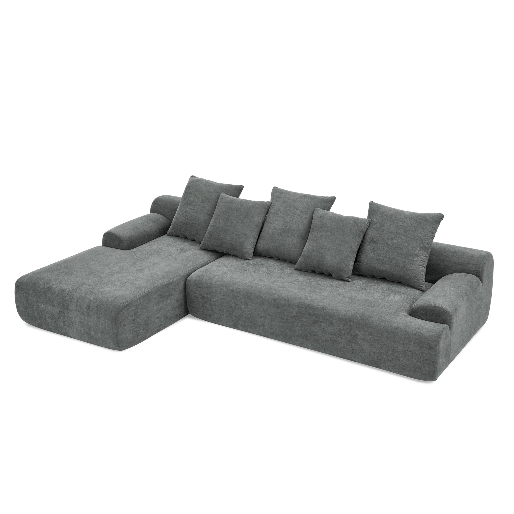 110.25x67'' Modern Upholstered L-Shape Sectional Sofa Couch, Modular Compressed Sofa with Free Combination for Living Room Bedroom, Melange Velvet, Grey