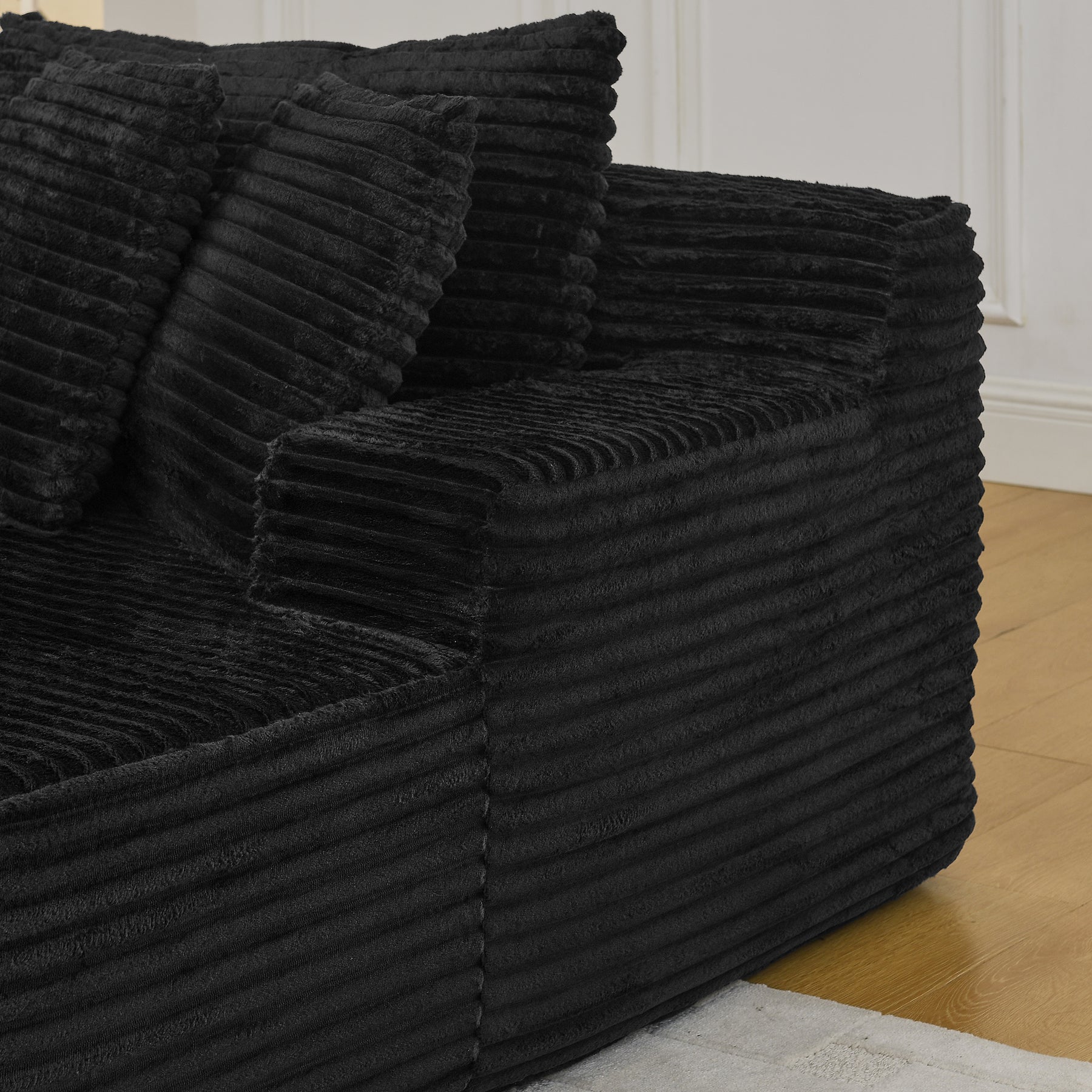 Two-seater lazy sofa lounge chair,Compressed sofa no assembly required, made of velvet fabric, fluffy modern lounge chair, used for indoor living rooms and bedrooms-Black