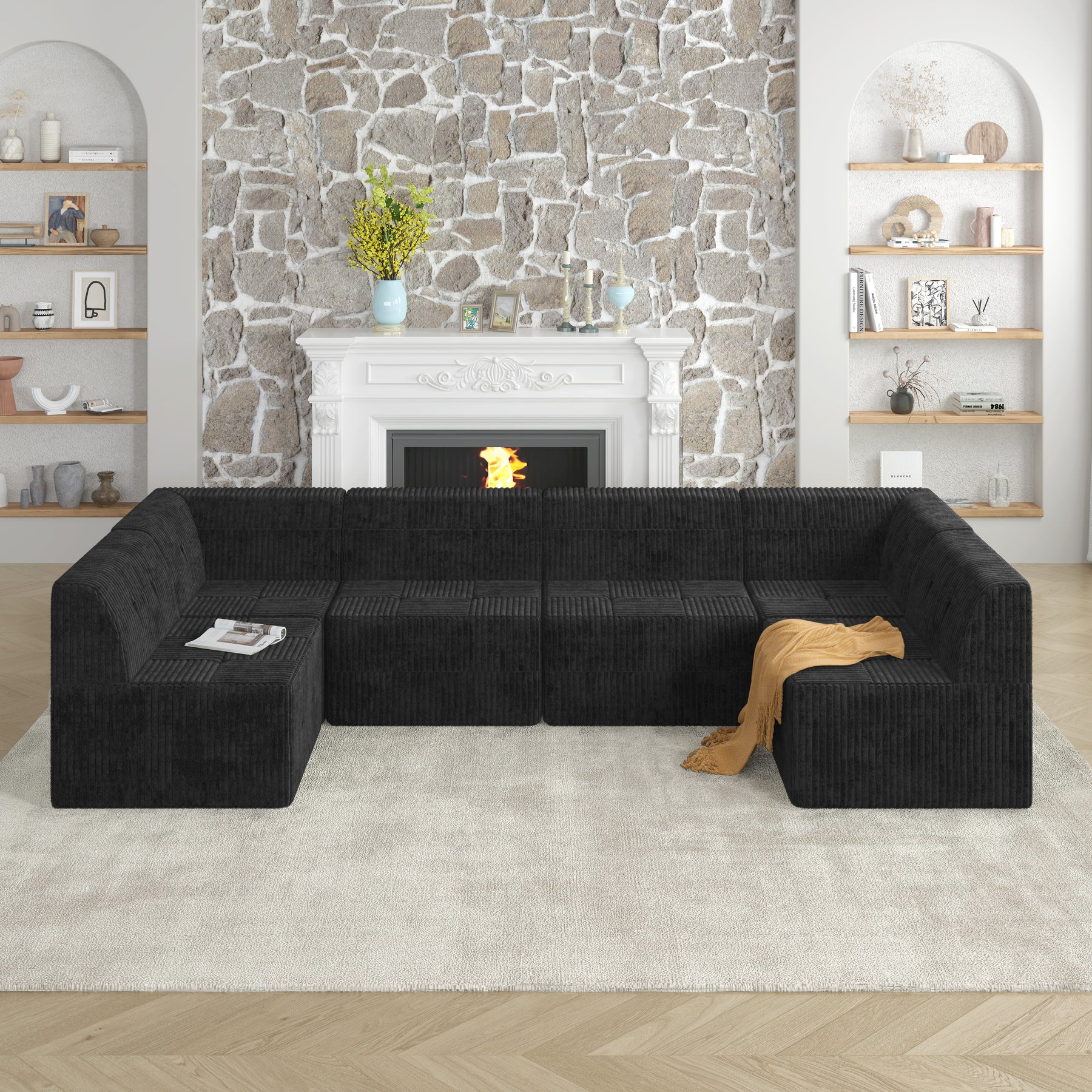 U shape Modular Sectional Sofa, Compressed Sectional Sofa Modern Minimalist Style Corduroy Couch, Sleeper Sofa for Living Room, Bedroom, Comfy Compressed Sofa Couch Space-Efficient Design-black