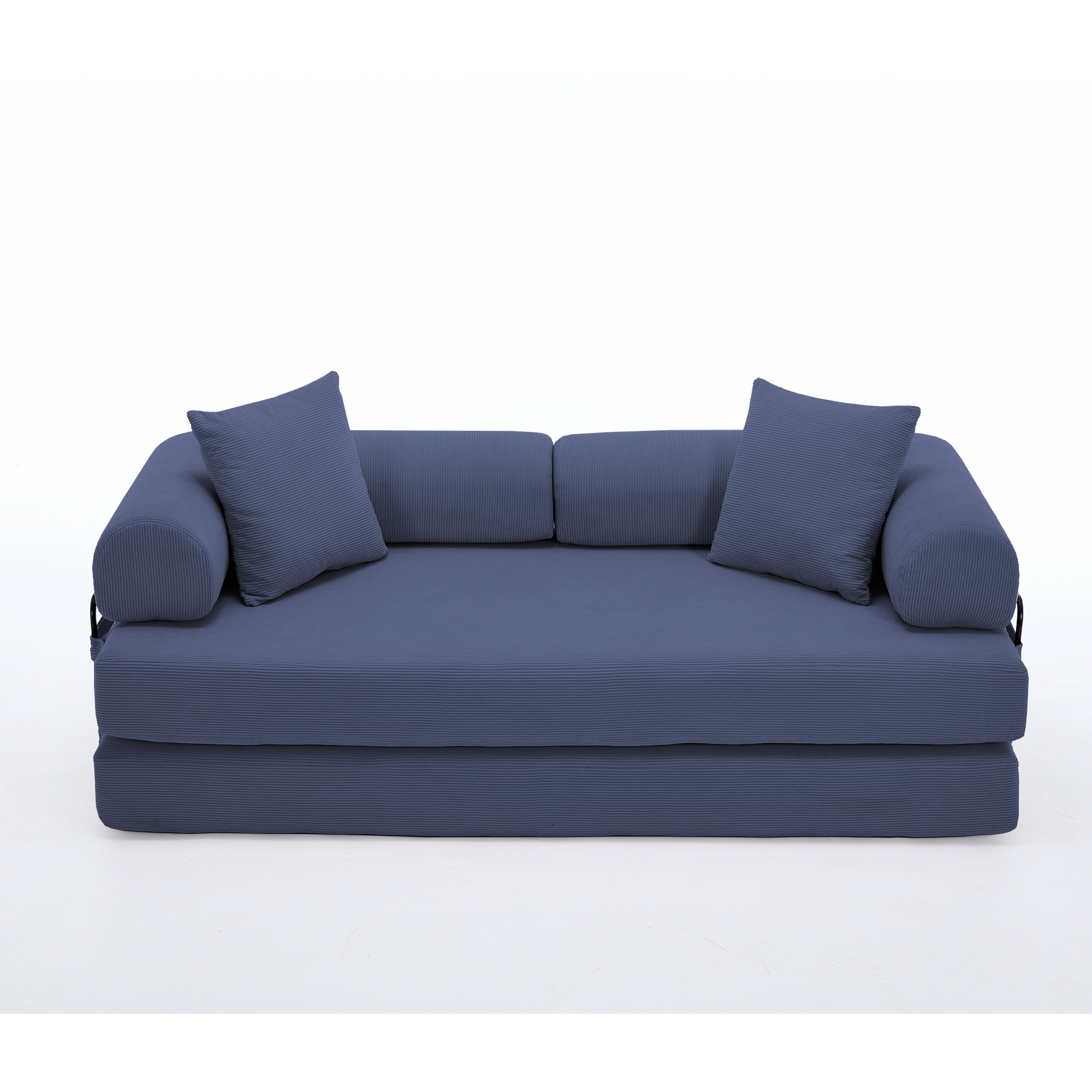 [NEW ARRIVED] [VIDEO PROVIDED] 78.5' Folding Convertible Out Sleeper Sofa Bed,4-in-1 DIY Combination Convertible Sofa,3 seat, Folding Sofa, King Size , Bedroom,Apartment,Corduroy,Blue