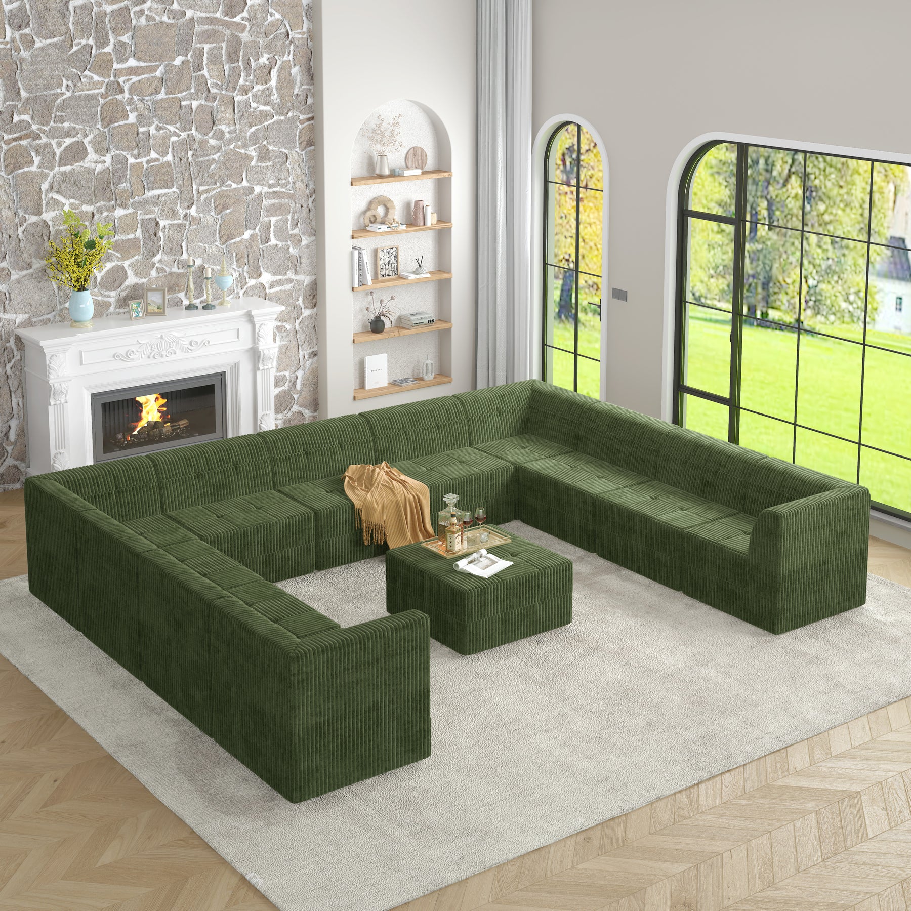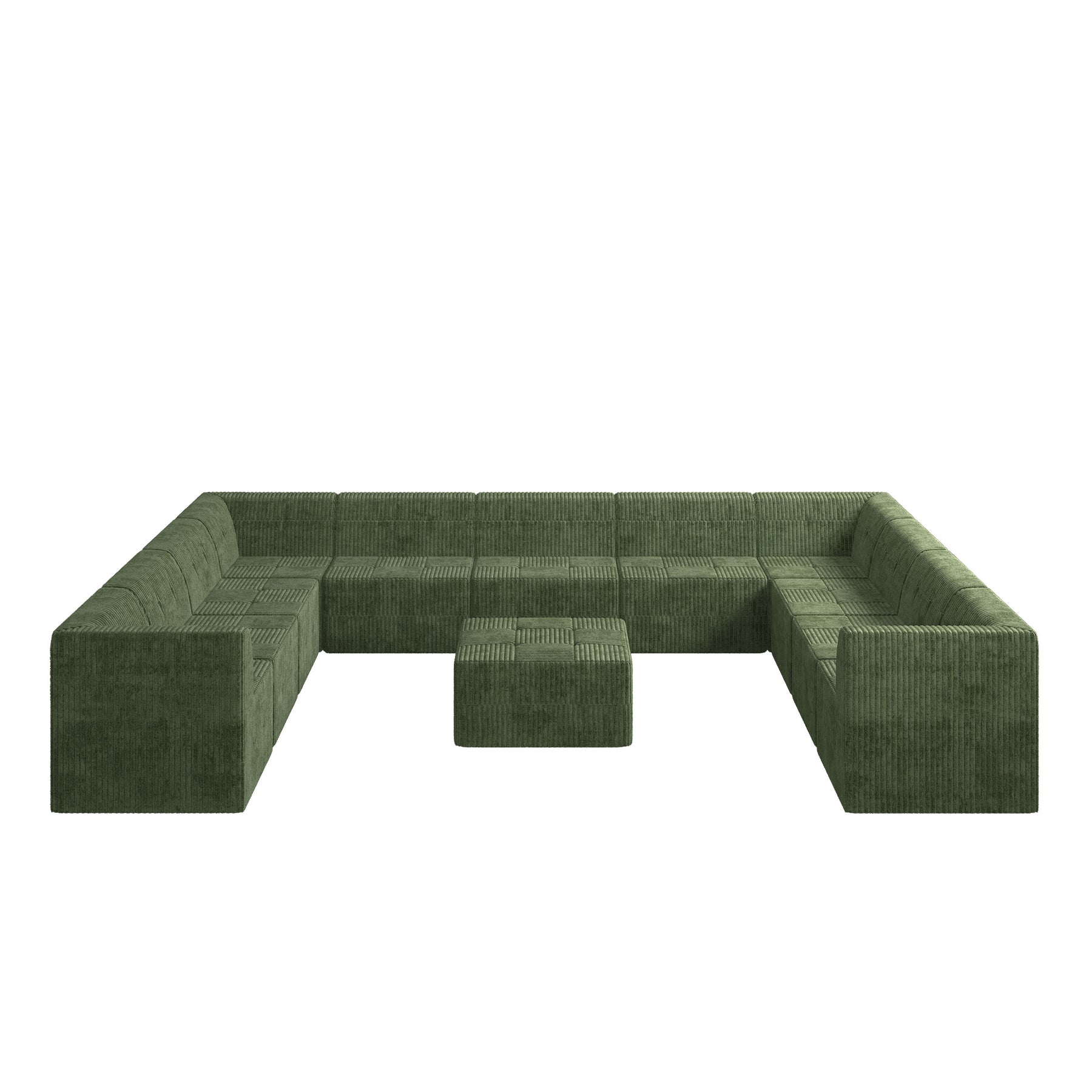 U shape Modular Sectional Sofa,DIY Compressed Sectional Sofa Modern Minimalist Style Corduroy Couch, Sleeper Sofa for Living Room, Bedroom, Comfy Compressed Sofa Couch Space-GREEN