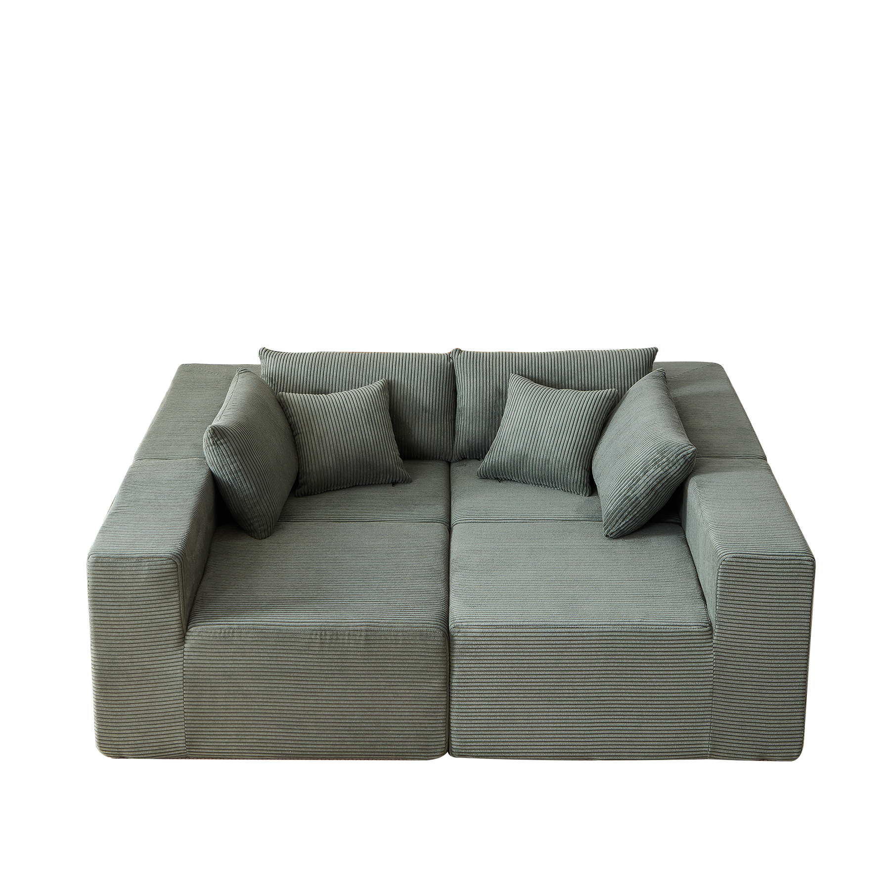 104-Inch Corduroy  Modular L Shaped Sectional Sofa,Luxury Floor Couch Set,Upholstered Indoor Furniture,Foam-Filled Compressed Sofa for Living Room,Bedroom,4 PC Free Combination