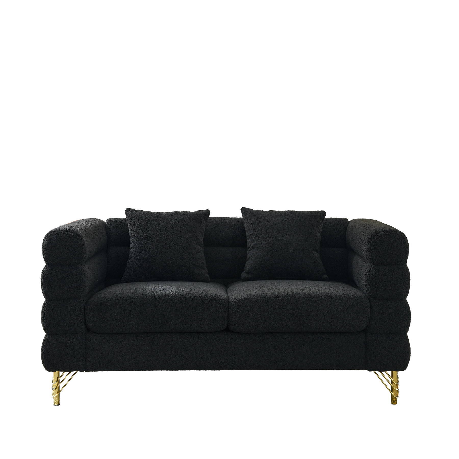 • ✔ DURABLE: The sofa is supported by a solid wood frame and sturdy gold polished metal legs, this modern 2 seater living room sofa is strong and durable. Each seat can easily hold up to 250 pounds, making it ideal for 2 people to relax.